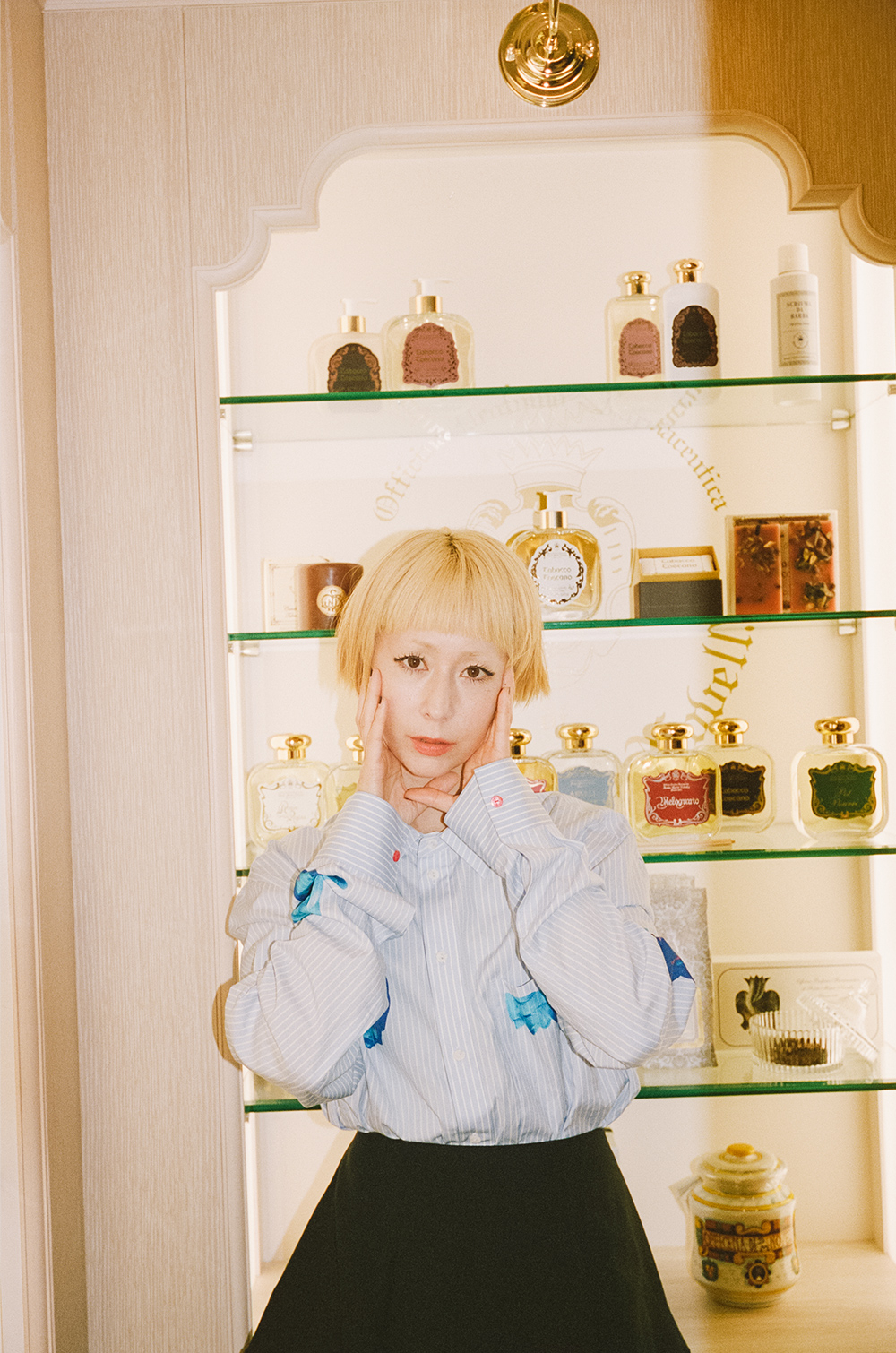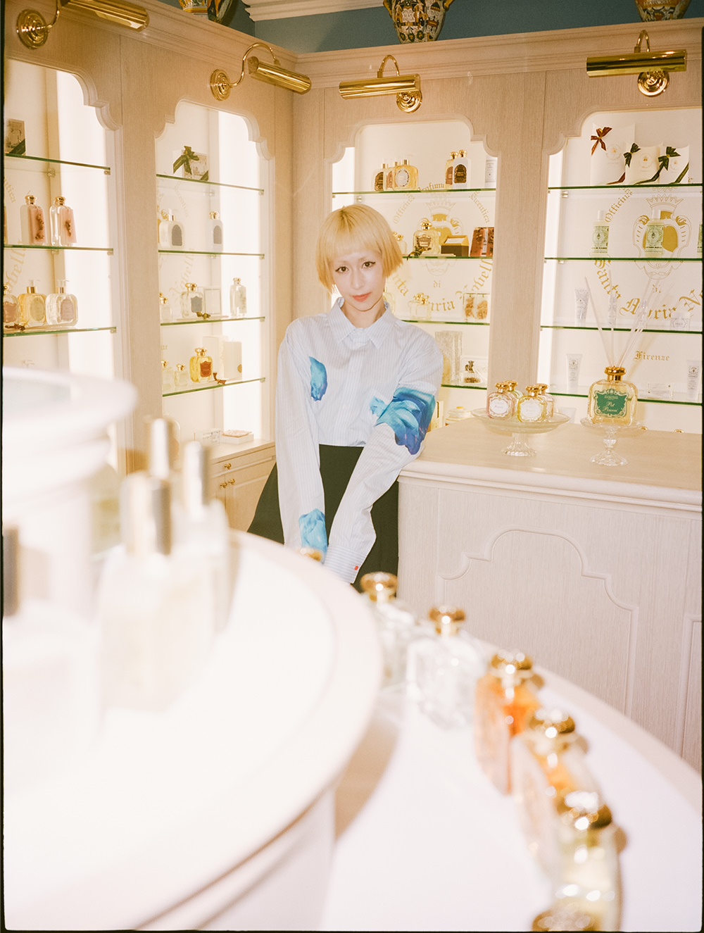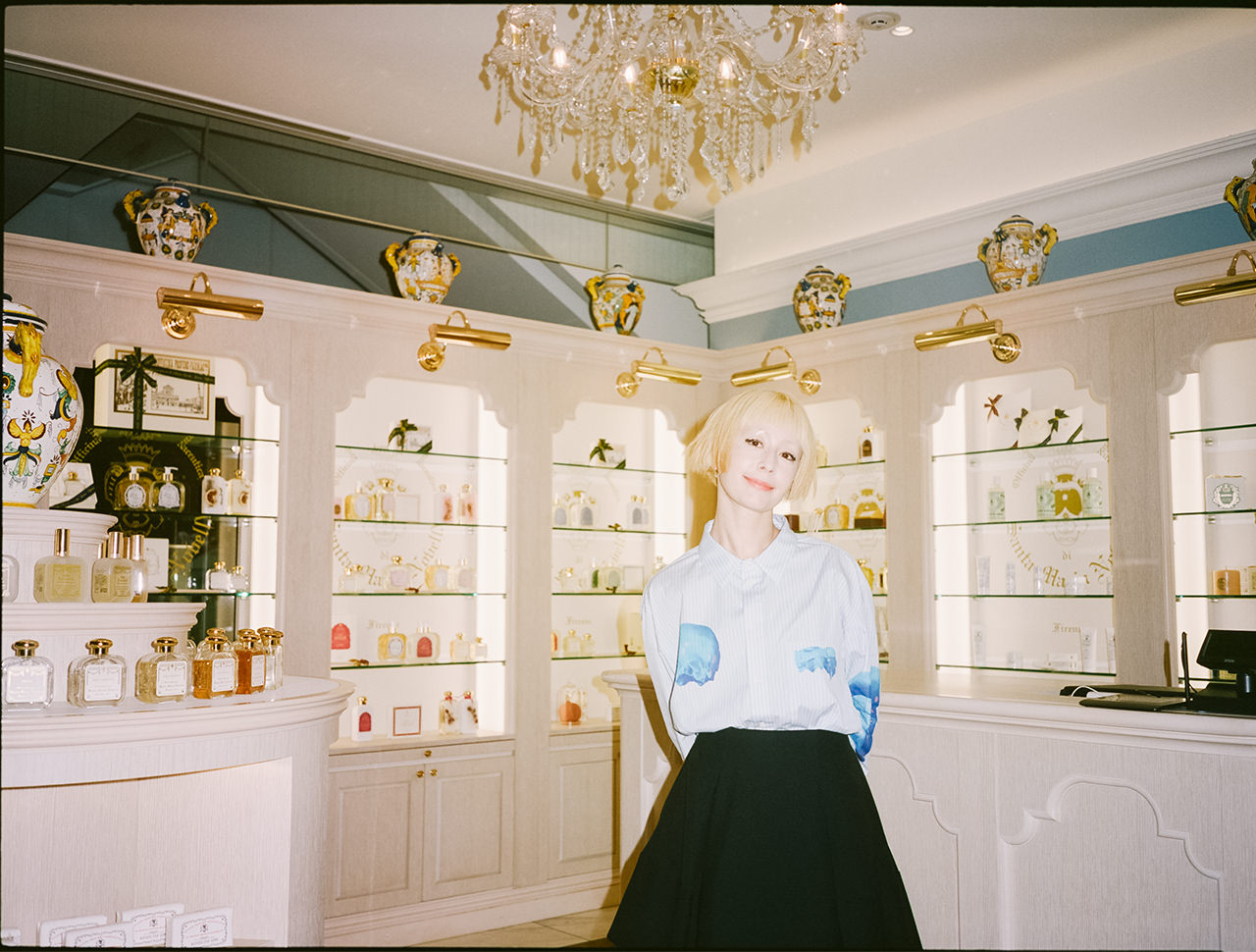 木村カエラさんとこのブランドの出会いは、ちょうどデビューが決まった19歳の頃。「当時、事務所が外苑前にあり、駅のすぐ近くにあるSanta Maria Novellaのお店をお金がないけれど覗きに行くというのが、すごく好きだったんです。『自分へのご褒美に』と頑張って買ったのが、石鹸とバラの花びらを絞ったようなフレッシュな香りがするローズウォーター。800年というとてつもない歴史があるから、軽い気持ちでつけられなくて。『ちゃんと大事に使わなければ』という想いは、今もどこかにあります。お店に入ると、高貴な感じがしてドキッとします」