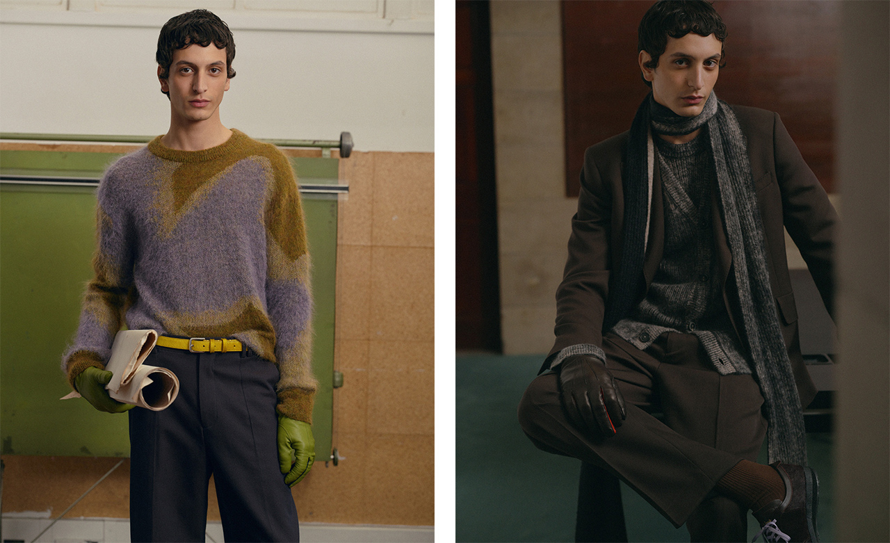 2024秋冬シーズンは、クラシックなテーラリングを再構築し、新たなアプローチを提案。スーツやコートはリラックスしたシルエットでソフトかつモダンな印象を与え、20世紀イギリスのドレスコードを、実験的なプリントや意外性のある素材、アースカラーのパレットなどで新たに表現。伝統的なテーラリング素材に加え、グランジ風モヘアやアシッドウォッシュ加工のデニムが存在感を放ち、Paul Smithならではの「ひねりのあるクラシック」を体現した。
