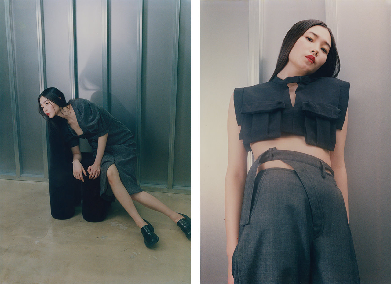「leinwände」や「soduk」、「TĔLOPLAN」、「PERVERZE」「BIGOTRE」など、気鋭の日本人デザイナーを中心にセレクトする「HIGASHI」。偶像崇拝に見られる普遍的無意識をテーマにした「TĔLOPLAN」の24AWは、ふくよかな丸みを帯びたシルエットや櫛描模から着想したニットなどを主軸に展開し、内外の心の不分離を表現している。キャンバスに絵を描くように服を生み出す「leinwände」は、デザイン工程の中にある遊び心や大胆な自由さを表現。24AWでは、フォーマルなルックに潜む温かみあるクラフトマンシップ、その対比するようで共存するタイムレスな価値観を提案。
