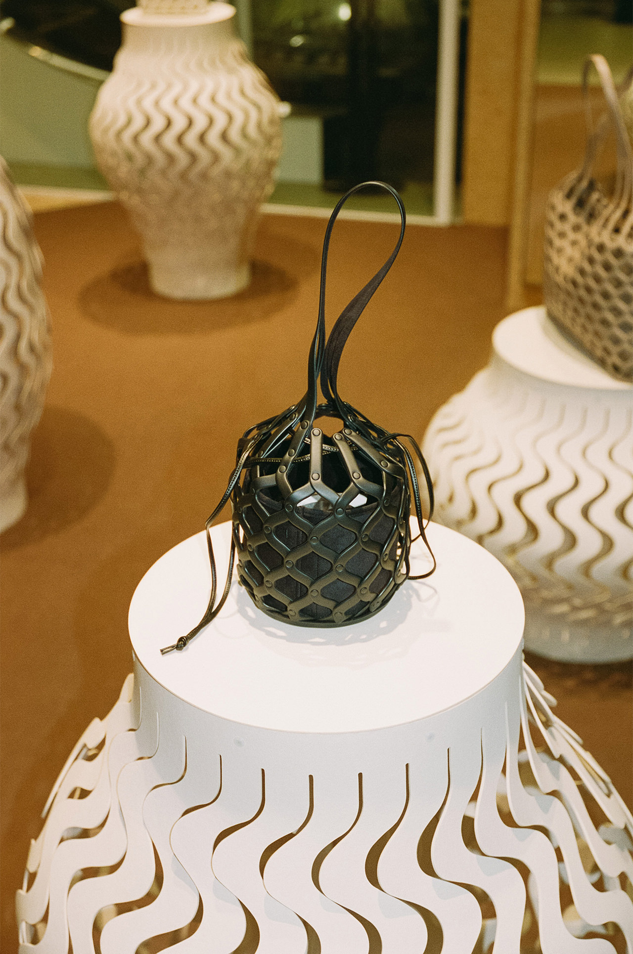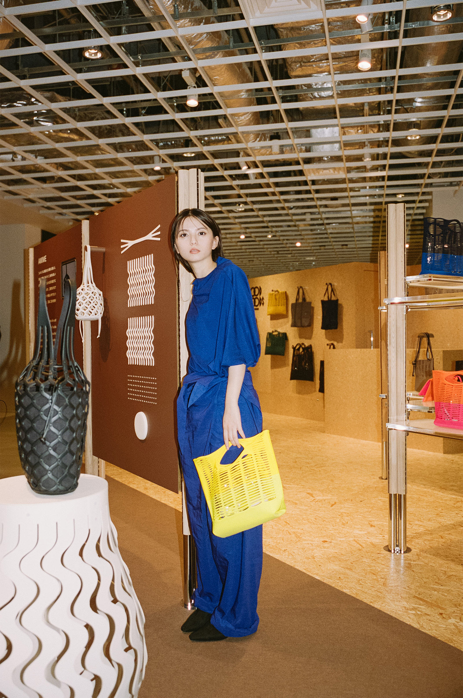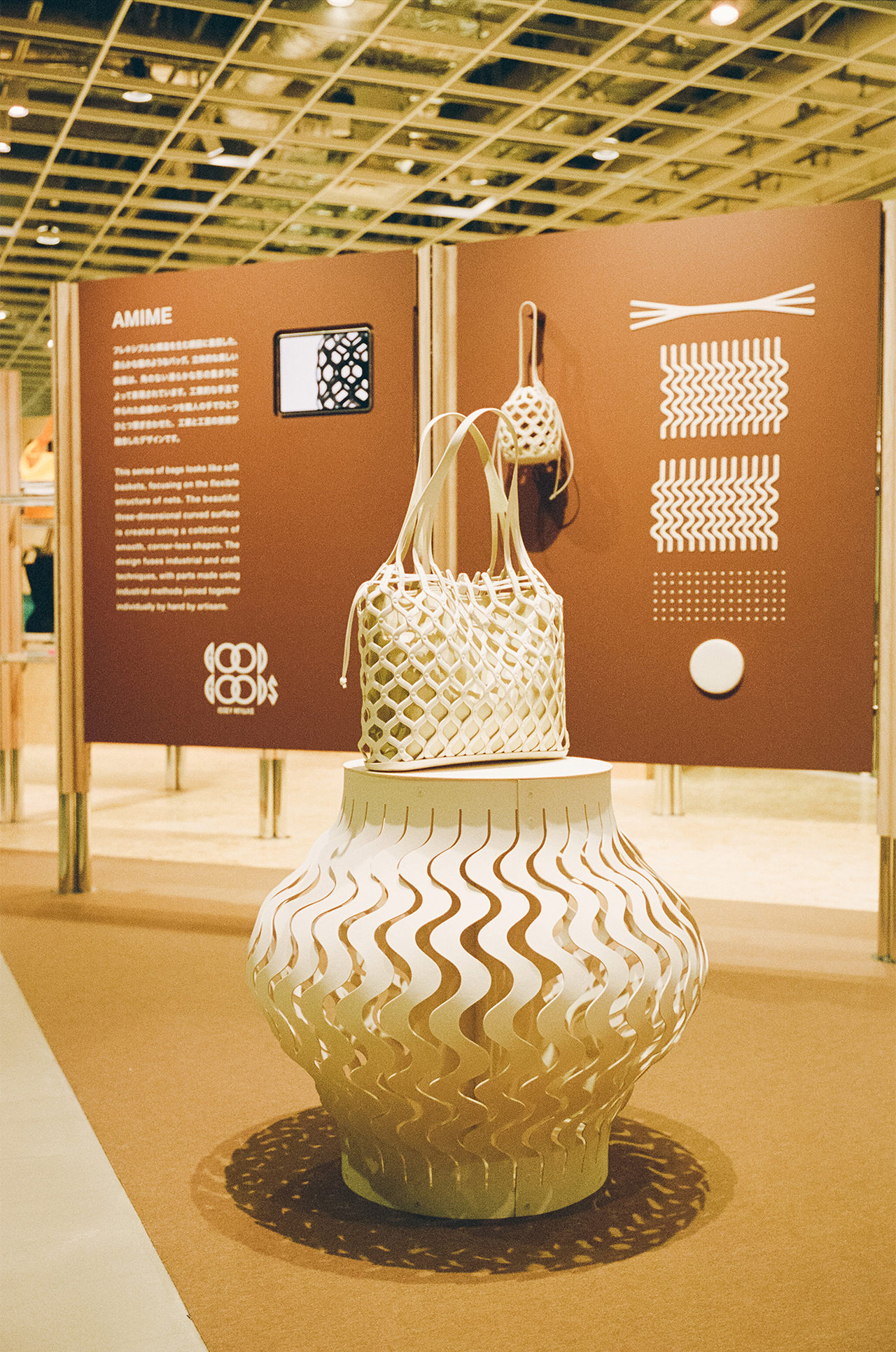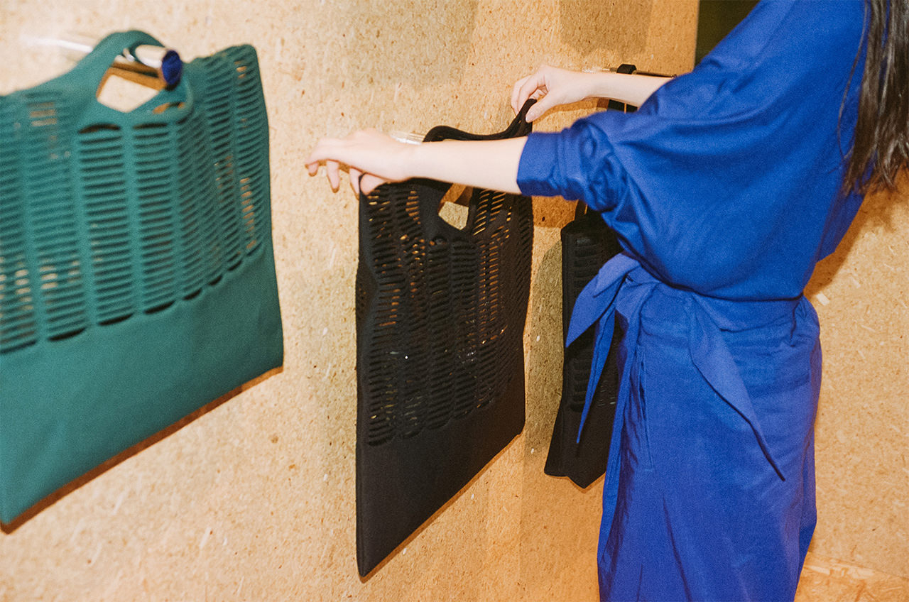 “いいもの”を探求して、2018年にスタートした雑貨開発プロジェクト「GOOD GOODS ISSEY MIYAKE」。今年3月、渋谷PARCO 3Fにオープンした2店舗目となるショップは、遊び心あふれる発想と独自のアプローチによる個性的なプロダクトの魅力を引き出すべく“可変する空間”に。設計を手がけたのは、渋谷PARCO 4Fのフロアリニューアルも担当した「DAIKEI MILLS」。骨組みを組み替えて、自由に変化する空間は、ものづくりのテーマや背景も体感できる場所となるよう店舗とギャラリーが同居するような空間となっている。8月末までは、新作バッグ「AMIME」にフォーカス。その名の通り“網目”の構造からヒントを得た柔らかな籠のようなバッグは、立体的な美しい曲面、角のないなめらかな形の集まりによって表現されている。工業的な手法で作られた曲線のパーツを職人の手でひとつ一つ丁寧につなぎ合わせた、工業と工芸の技術が融合したデザインに。