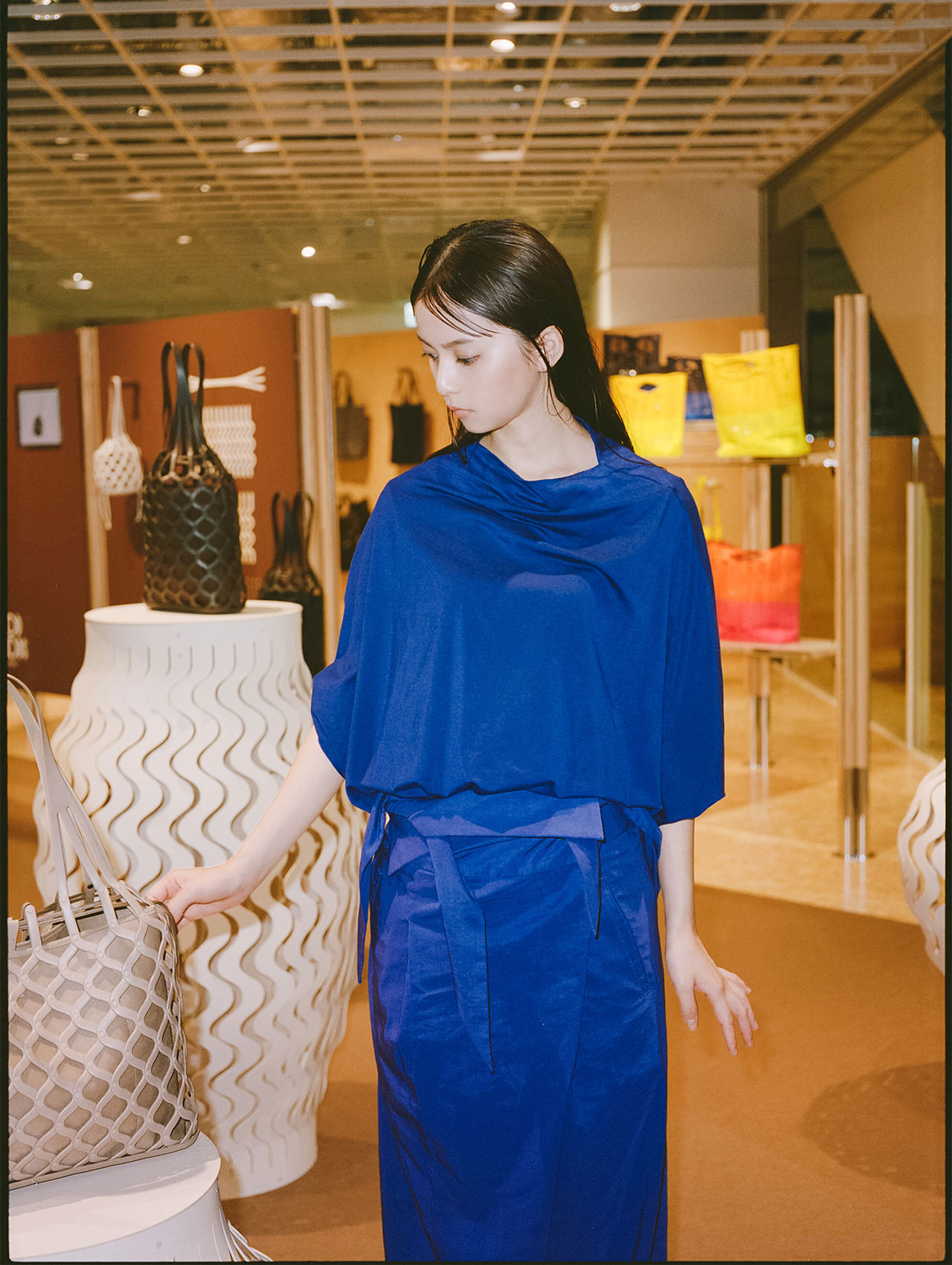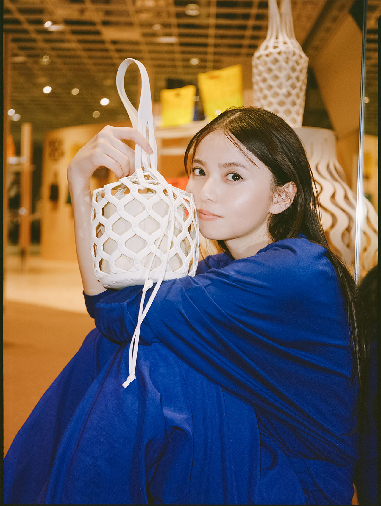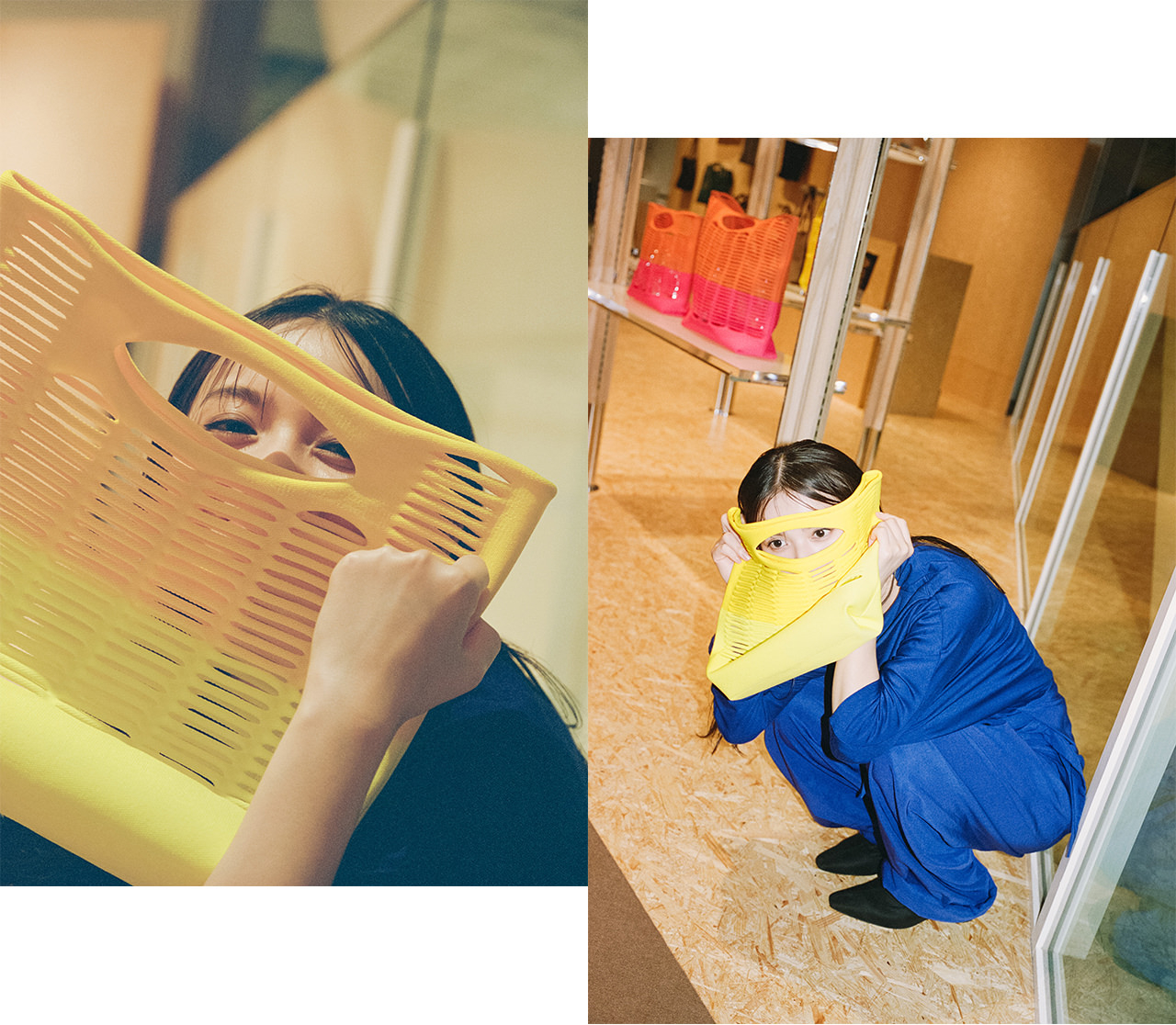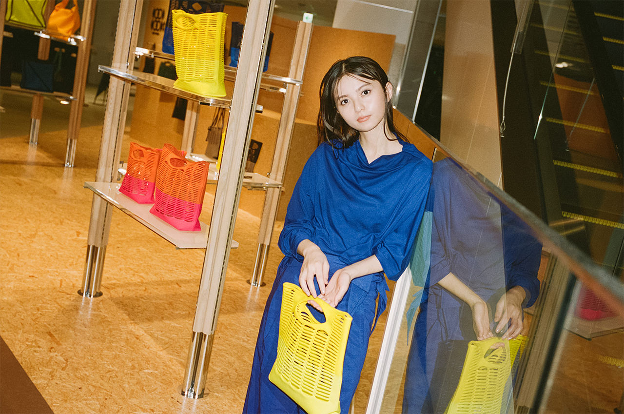 齋藤飛鳥さんが手にするのは、“洗えるかごバッグ”として親しまれる「MOKKO」の新作「MOKKO BI-COLOR」。一本の糸から編み上げた、軽くて柔らかいニットバッグは、水洗いが可能で扱いやすく、買い物など日常のあらゆるシーンで気軽に楽しむことができる。また、フルーツバスケットのようにテーブルに置いても美しく、使う人のライフスタイルに寄り添う機能美も魅力のひとつ。上下で大胆に切り替えた鮮やかなバイカラーの新色は、鮮度も気分もぐっと上がるプレイフルなデザインと使いやすさで、自分らしい個性をさりげなく表現してくれる相棒に。