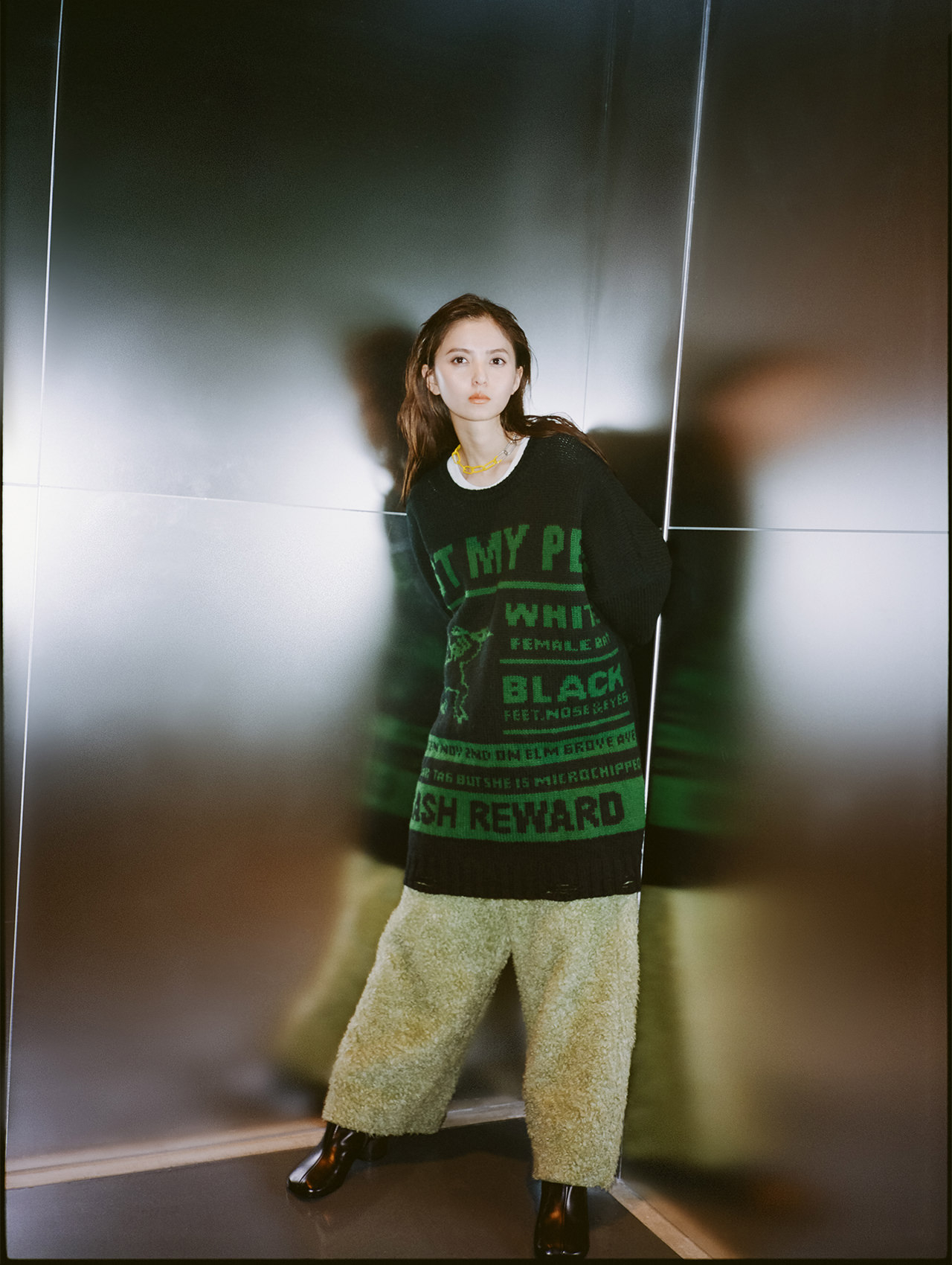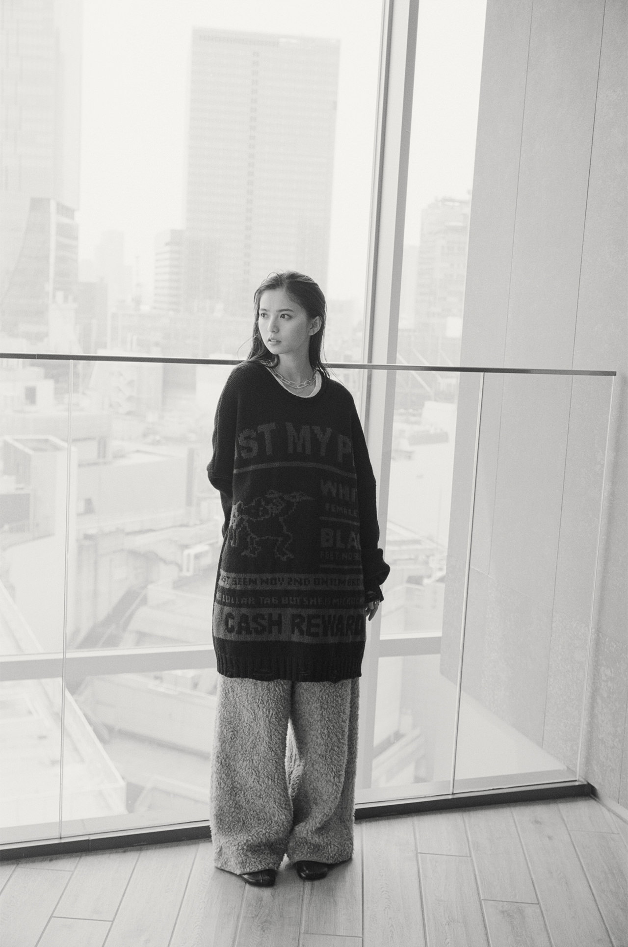 齋藤飛鳥さんが着用しているニットは、今年9月13日、店舗面積を拡大して渋谷PARCO 3Fにリニューアルオープンする国内最大の「MM6 Maison Margiela」で先行発売される。2024年秋冬「SHOW」コレクションのランウェイでも登場し、オーバーサイズのシルエットとユニークなグラフィックが特徴的な注目のアイテムだ。