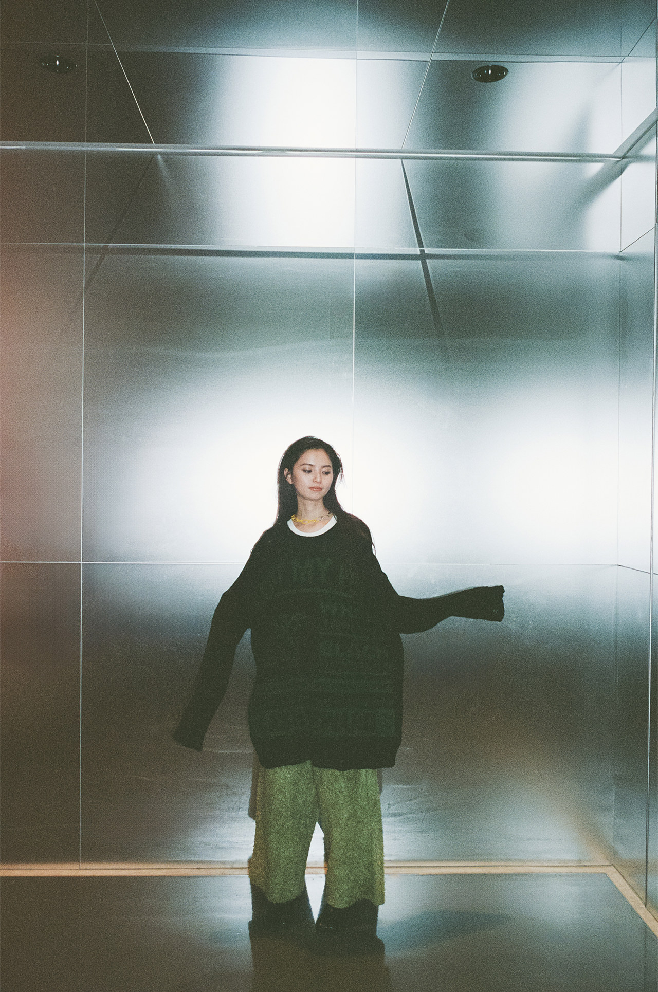 「最近は、ユニセックスなデザインもすごく多いですよね。私はオーバーサイズの洋服が好きなので、自然とメンズものに目がいくことが多くて。なんとなくメンズのほうがポケットの数が多かったり、大きかったりと機能的な気がしていて、そういう機能美もメンズウェアの魅力だと思います。 普段は青や緑の寒色系か、白・黒を選ぶことが多いです。ファンの方に、私の色のイメージを質問したら、白と青の回答が多くて『やっぱりそういうイメージなんだな』って腑に落ちました」