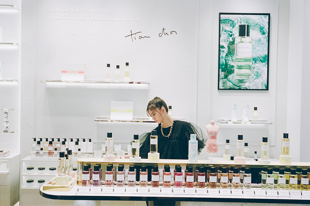渋谷エリアで唯一「メゾン クリスチャン ディーオル」のフレグランスを取り揃える「DIOR BEAUTY SHIBUYA」。リキッドソープやボディケア、キャンドルなど日々の生活を豊かに彩るアイテムも展開している。「香りは大切なエッセンス」だと言う齋藤飛鳥さんが乃木坂46を卒業してからはじめて語った香りの思い出――。彼女の感性を刺激するものについても伺った。