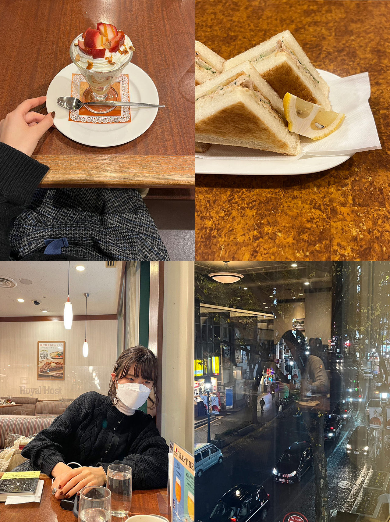 この日はqが作業をすると言ってノートに何やら書きつけており、私が暇をしないようにと『観察の練習』を貸してくれた。おかげでひとり窓際ボックス席観察会も捗って、いつも見過ごしていた街のフォルムやデザインを見つけ出してはなるほど、と新鮮な気持ちになった。暖房でややのぼせた体にパラダイスティーを流し込んでいるうちに閉店時間がやってきて、夢の中のような閉店放送とドビュッシーの『月の光』が流れ出したら時間切れ。吹き付けるつめたい風と人混みから逃れるように地下街へ逃げ込み、終電近くまで話し込んで、またこの日もそれぞれの街に帰って行った。