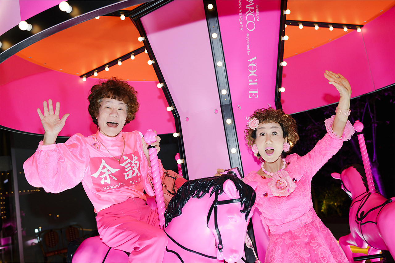 連日連夜続いた特別なアニバーサリー10日間のラストは、『VOGUE JAPAN』がプロデュース。渋谷PARCOリニューアル5周年を祝い、新しいクリエイティブの化学反応を起こすためのMeet&Greetパーティーだ。パーティー会場となった10F「ComMunE」には、ミーティングポイントの象徴として掲げられた、幻想的に輝く「PARCO x VOGUE JAPAN 雲の上のメリーゴーランド」が出現。特別ゲストとして、林家ペー&パー子師匠が登場し、ファッショニスタやクリエイターたちは交流を通してボーダレスにこの時間をエンジョイ。また、「BEST BUY」企画では藤井夏恋とSUMIREが、渋谷PARCOの「JIL SANDER」「THOM BROWNE」に訪れる一幕も。多彩なクリエイターたちが創出するパワーとハピネス溢れる、アニバーサリーイベントの締めくくりとなった。