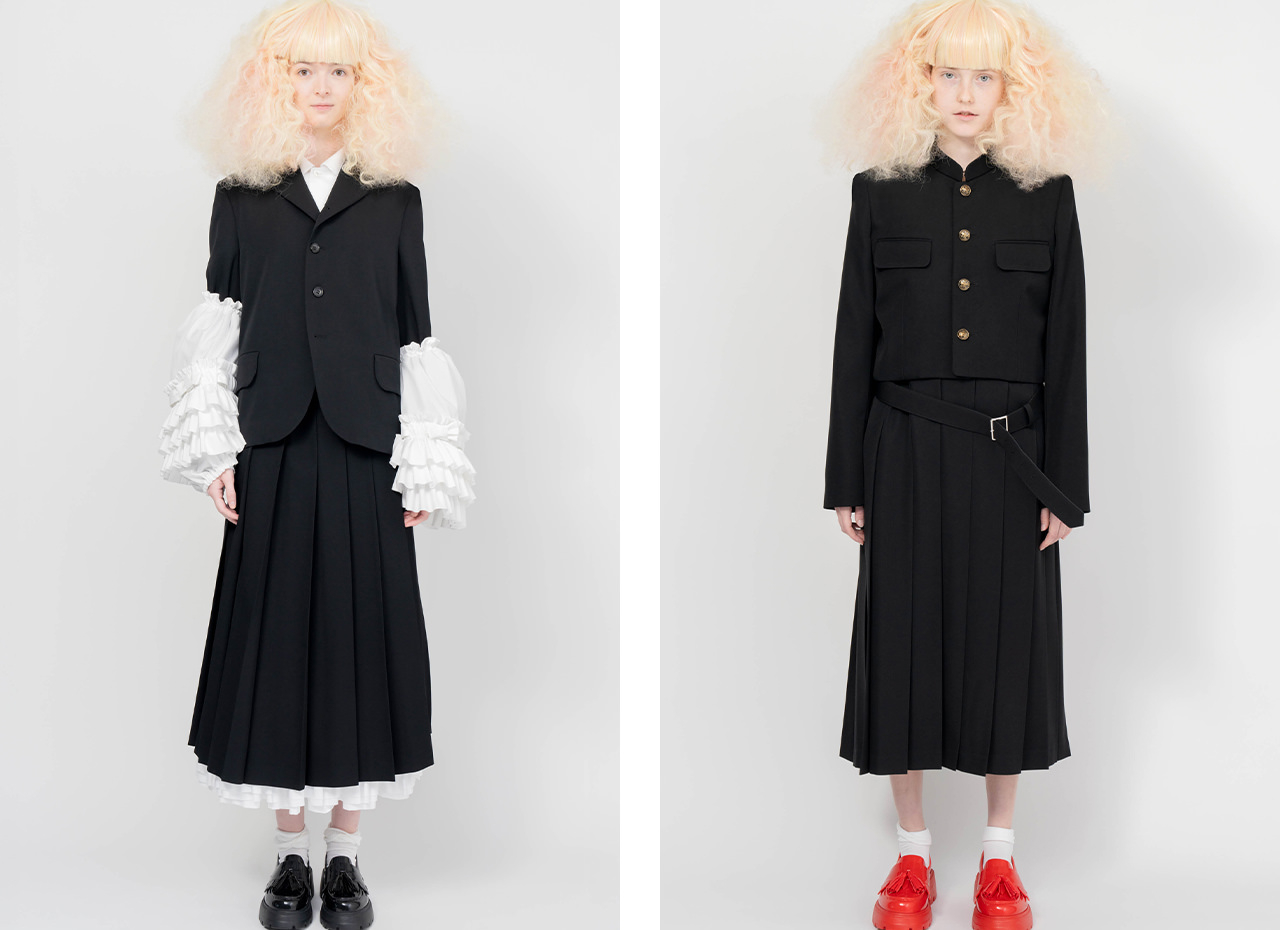 川久保玲が手がける「COMME des GARCONS GIRL」の25SSコレクションは、これまでも表現してきた定番のスクールルックのデザインを、さらにアップデート。コーディネートのアクセントになる水玉プリント・チェック柄アイテムも展開予定で、しっかりとした質感の制服ルックに、アクセントが効いたスタイルを楽しめる。「LAVENHAM」「MIZUNO」とコラボレーションしたベストやスニーカーにも注目。2025年2月7日(金)より販売予定。