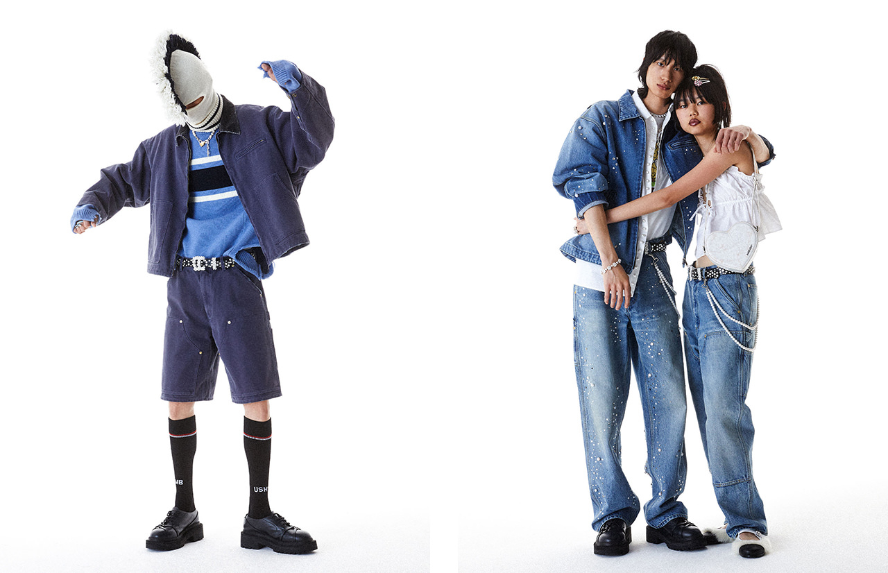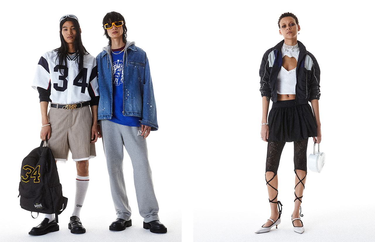 美大生の奇想天外なルックスは、常にデザイナーのインスピ源。25SSコレクションでは、成熟とナイーヴな面が錯綜する彼らをイメージし、多種多様なミスフィットが入り乱れる美術室を描き出す。ウィメンズは、「AMBUSH®」のハートモチーフが胸元にあしらわれたTシャツや、パールがぎゅっと集まった花柄のネックレス、ハート型のヘアクリップなどが登場。メンズは、擦り切れたキャンバスショートパンツにグラフィカルなラグビーシャツを合わせ、ハイ&ローのミックス感を演出。日本製テーラリングや洗練された新生地、多彩なリボンと色、キュートな魅力を融合し、独自のユニークなクラフトコラージュを追究する。