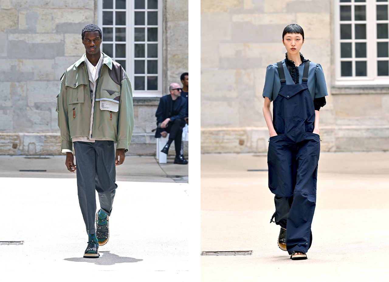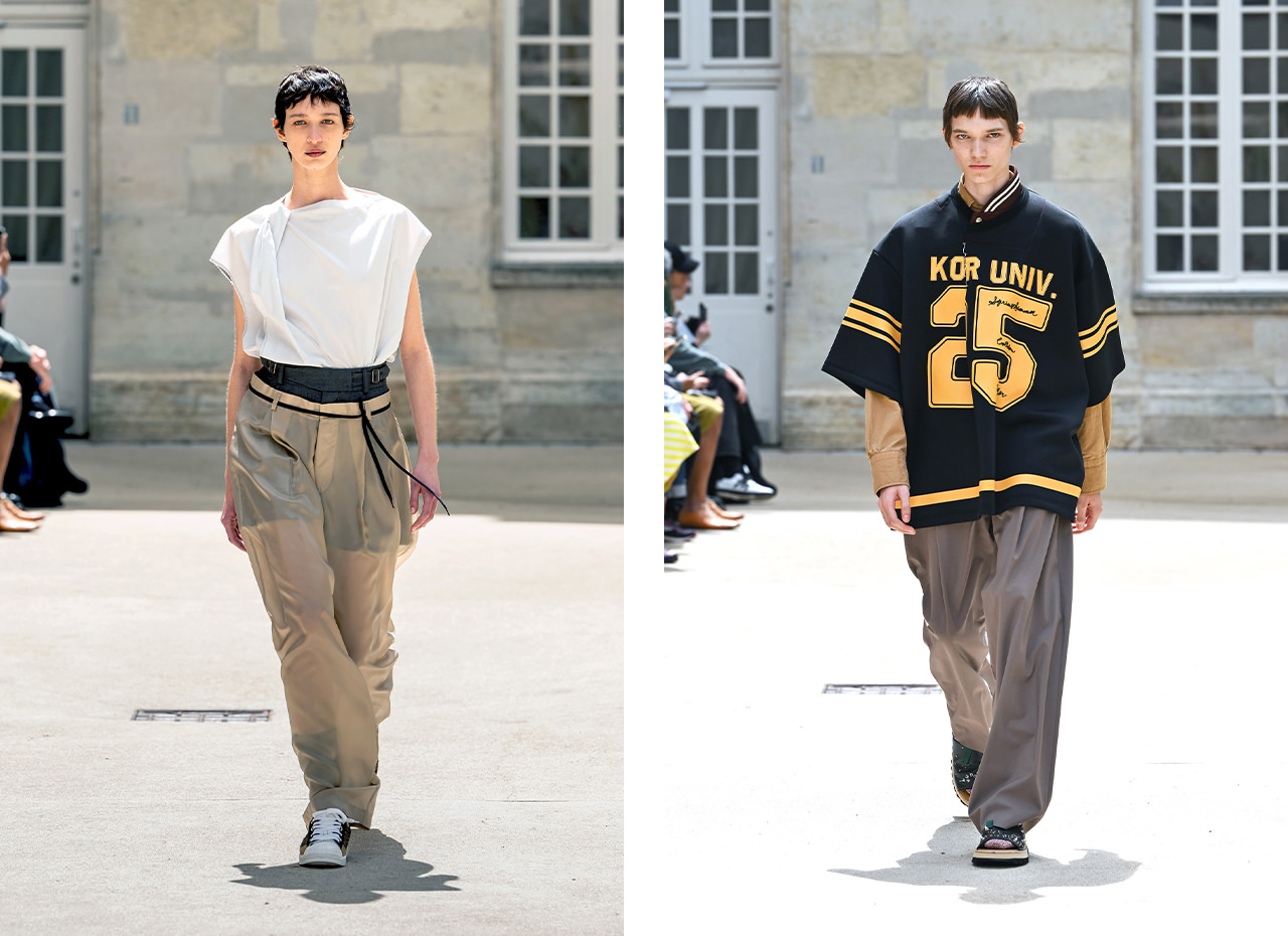 さまざまなユニフォームのフォルムやディティール、色などが随所に見え隠れし、ブランドらしい独特な世界観を紡ぎ出したコレクション。異なるミリタリージャケットの要素を凝縮したようなブルゾンをはじめ、プレッピーやワーク、ミリタリーなどをベースにしたデザインを展開。片方の襟がスカーフのように変化するシャツなど、心地よい違和感が新鮮な印象を演出する。透け感のある春夏らしい軽やかな素材も多く登場し、そこから生まれる流れるようなシルエットも特徴的。