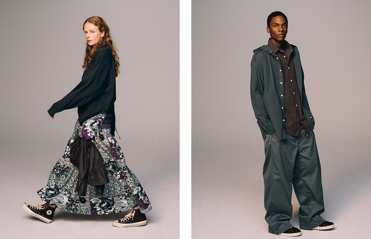 「THE NORTH FACE Purple Label」は、時代の変化とともに生み出されてきた「THE NORTH FACE」の傑作を街着としてアップデート。アメリカンカルチャーとアイビースタイルをミックスし、都会で機能するアウトドアウェアを展開する。古き良きアメリカのフィーリングがレイヤーされたメッセージ性の強いデザイン、旅のスタイルを快適にサポートする軽量で便利なユーティリティアイテム、サステナブルで機能性と汎用性の高いベーシックなデザインといった、3つのカテゴリーで構成。「NOMA t.d.」の代名詞であるハンドドローイングで、花柄を描いたテキスタイルにも注目だ。