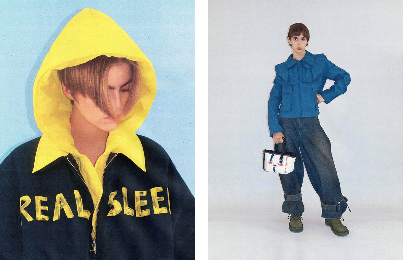 明晰夢をインスピレーション源に、夢の世界へと誘う25SSコレクション。「REAL SLEEP」の文字、枕や羽毛布団のような中綿、シルクとレースのナイトウェアを思わせる繊細なディテールが特徴。ユニークなサイジングと誇張やツイストされたパーツによって、どこかシュルレアリズムを彷彿とさせる奇妙さも漂わせている。今シーズンも示唆や暗示に富んだシルエットでメンズとウィメンズの要素を融合させ、マスキュリニティとフェミニニティをモダンに表現。ジョナサン・アンダーソンらしい、遊び心溢れる美学が詰まったデザインを展開する。