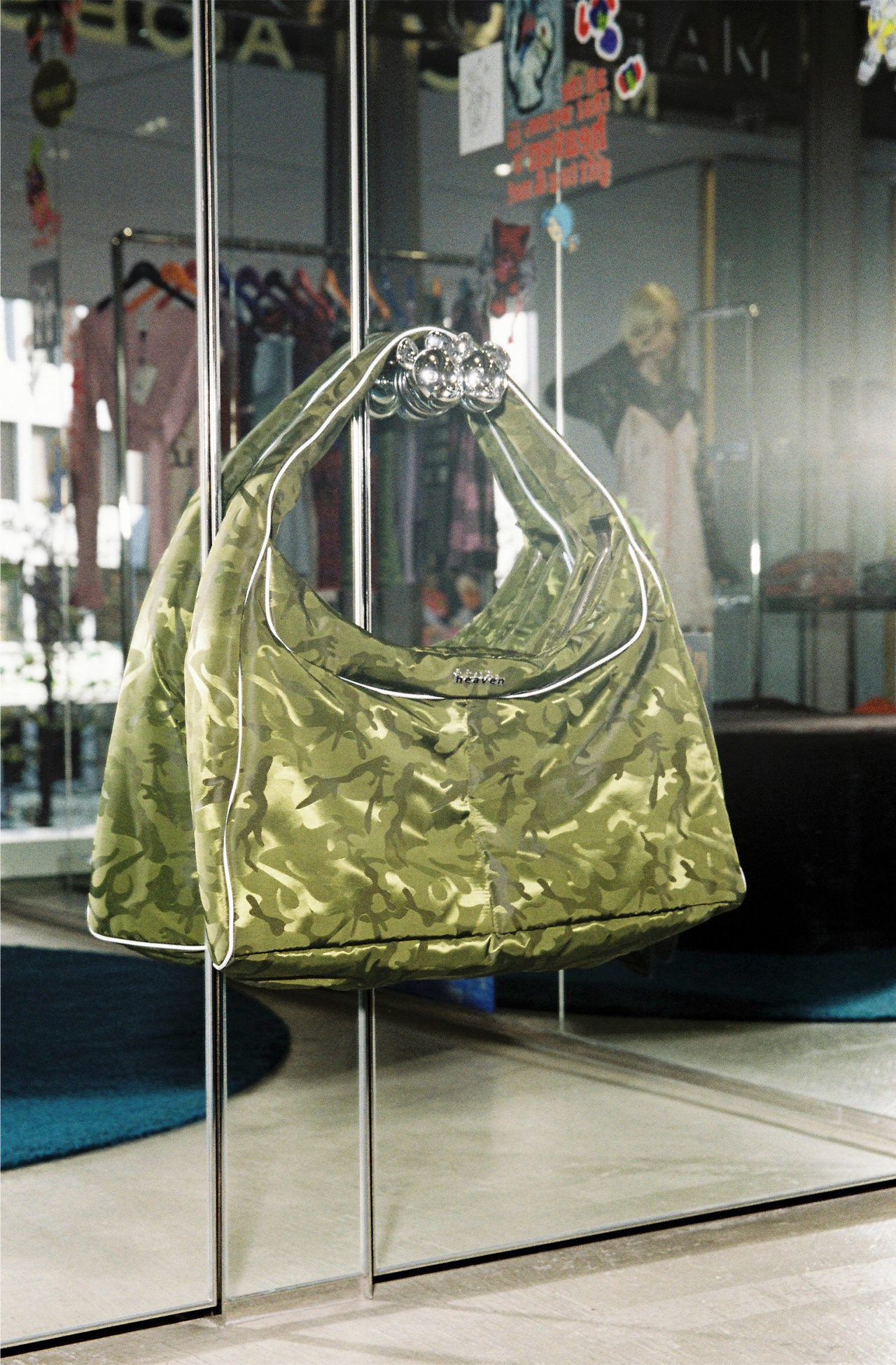 ショップクルーズをしながらCOCOさんが手に取ったカモフラージュのナイロン製の大きなバッグは、Gorillazとコラボレーションをした新作。バッグの中は、オーガナイズしやすいようにポケットがたくさん付いた機能性が魅力。また、入荷するたびに即完売となるフレンドシップ ネックレスはマストハブ。ダブルヘッドベアのチャームがアクセントになった“友情ネックレス”も注目のアイテムだ。