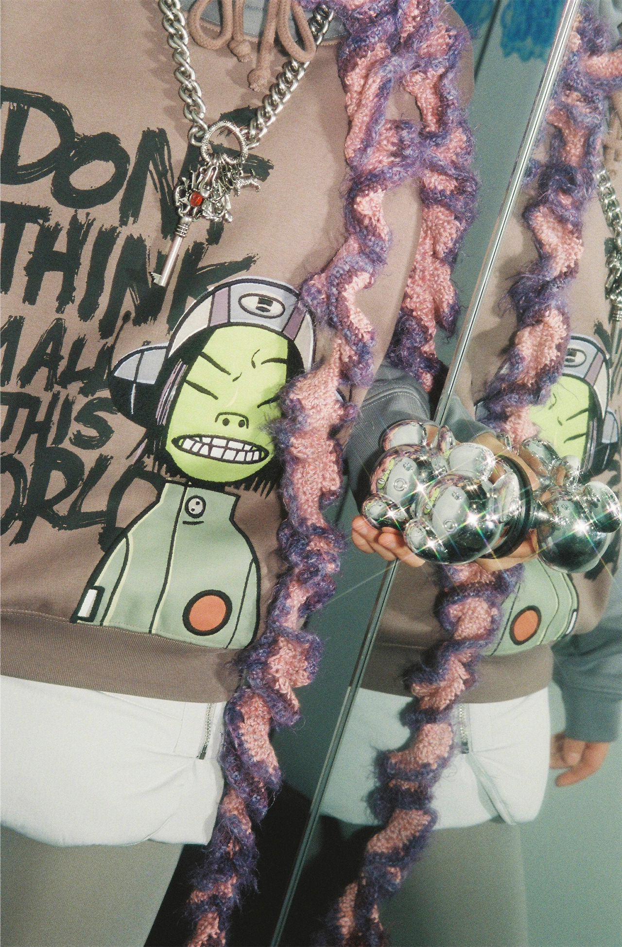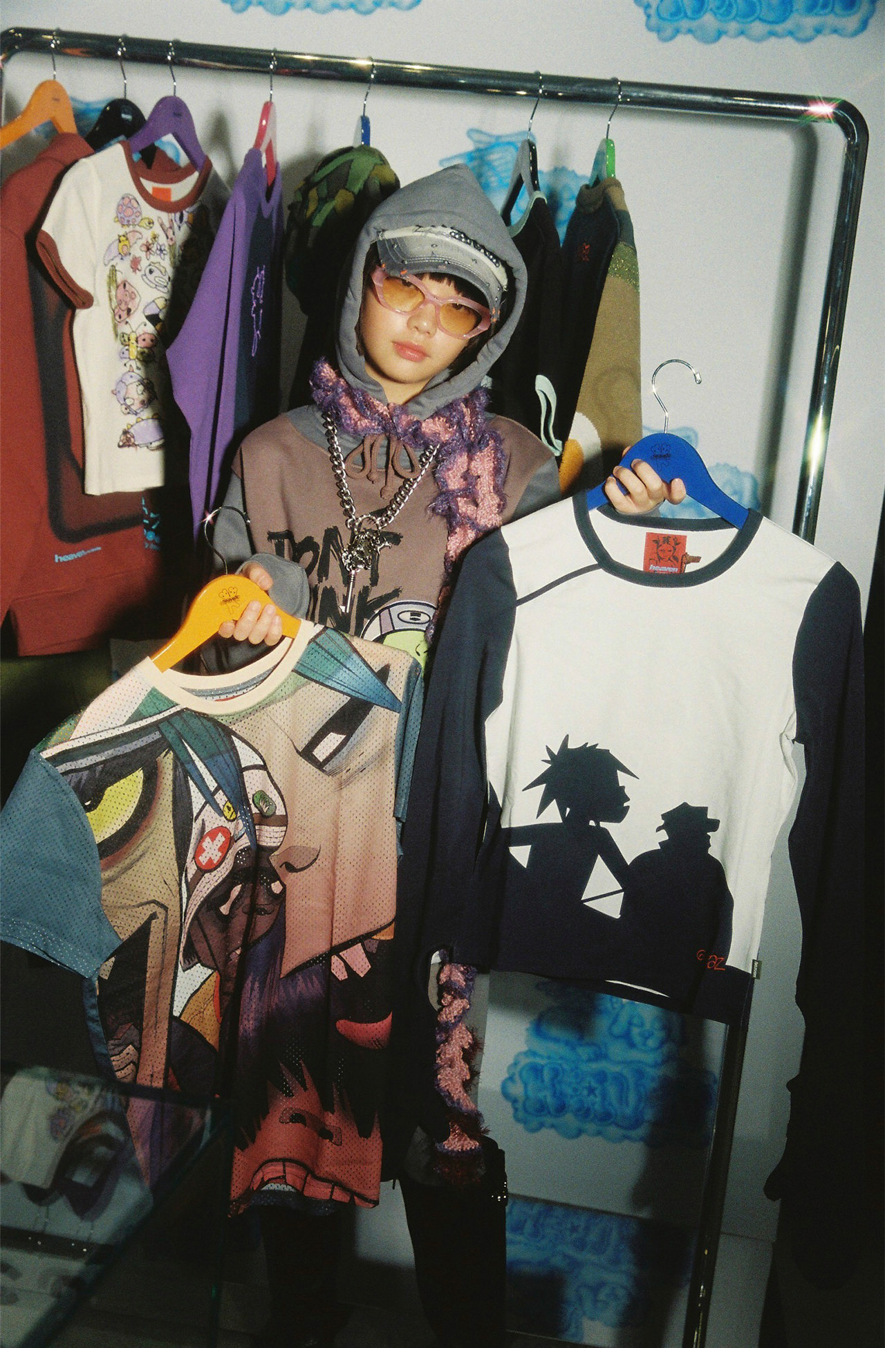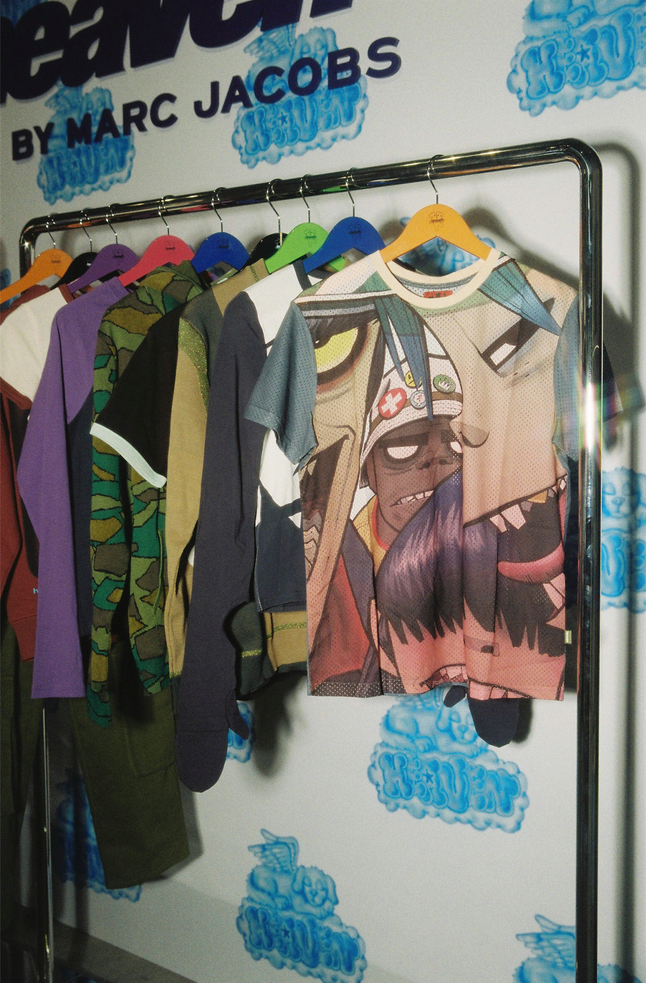 「Heaven by Marc Jacobs」における注目すべき新作は、1998年に結成されたBlurのデーモン・アルバーンとコミックアーティストのジェイミー・ヒューレットによるバーチャルバンド“Gorillaz”とのコラボレーションだ。フィット感あるミニTシャツやロングスリーブのフーディなど、Heavenを象徴するアイコニックなアイテムにGorillazのアニメーションが落とし込まれている。