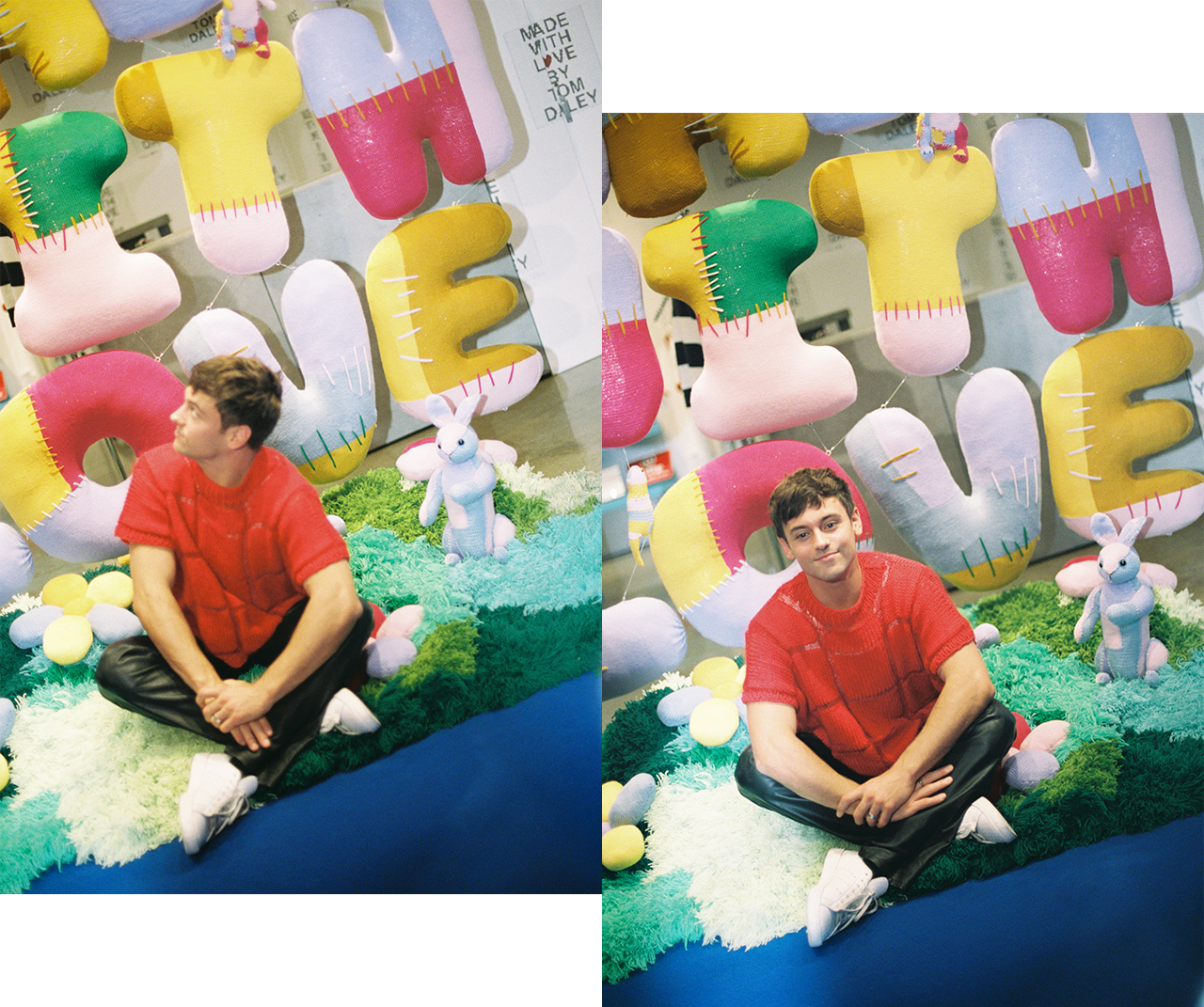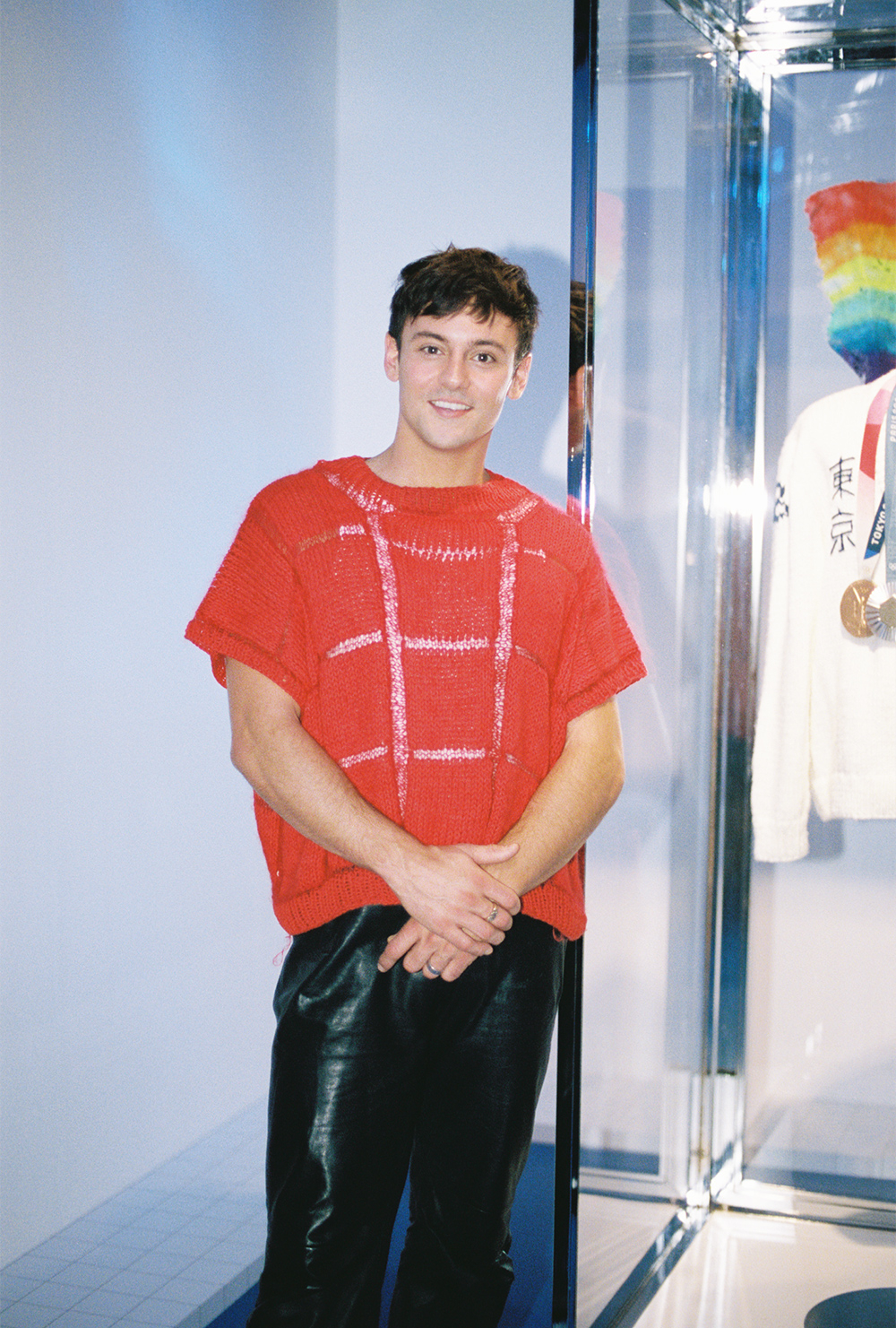 2024年11月、カルチャーフェスティヴァル「あいとあいまい」の一環として、自らの感性で常識や表現の壁を軽やかに超え、多幸感に溢れた空間が広がったトム・デイリー氏による展覧会『Made with Love by Tom Daley』を開催。イギリス男子飛込競技選手でありながら編み物が大好きで、競技会場でもニットを編んでいる姿が話題となったトム氏。そんな彼のニット作家としての活動を、展覧会というかたちで発表するのは、今回が世界初だ。展覧会当日、彼が着用していた赤色のニットも、来日するまでの飛行機の中で編んだものだという。