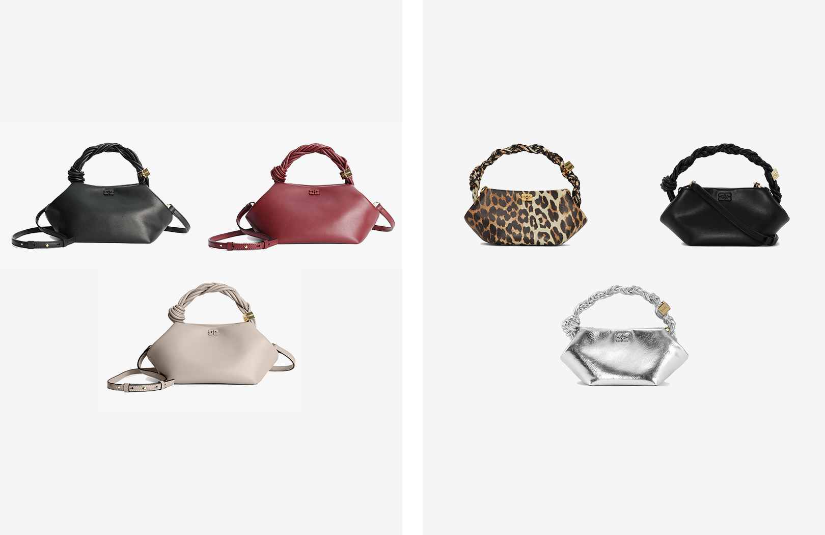 2019年に設立された革新的プロジェクト「Fabrics of the Future」は、持続可能な素材の研究と実験を推進。2025年春夏コレクションでは、30種類以上の新素材の一部を取り入れ、デザインに昇華した。ブランドを象徴する「GANNI Bou Bag」は、リサイクルレザーを採用し、サステナブルなクラフトマンシップを体現。さらに、プロジェクトの一環として、オレンジやカクタス農業の副産物とリサイクルプラスチックから生まれたバイオ素材「Ohoskin」を使用したブラックカラーにも注目。持続可能な素材と遊び心あふれる六角形のシルエットが、新時代のラグジュアリーを創り出す。