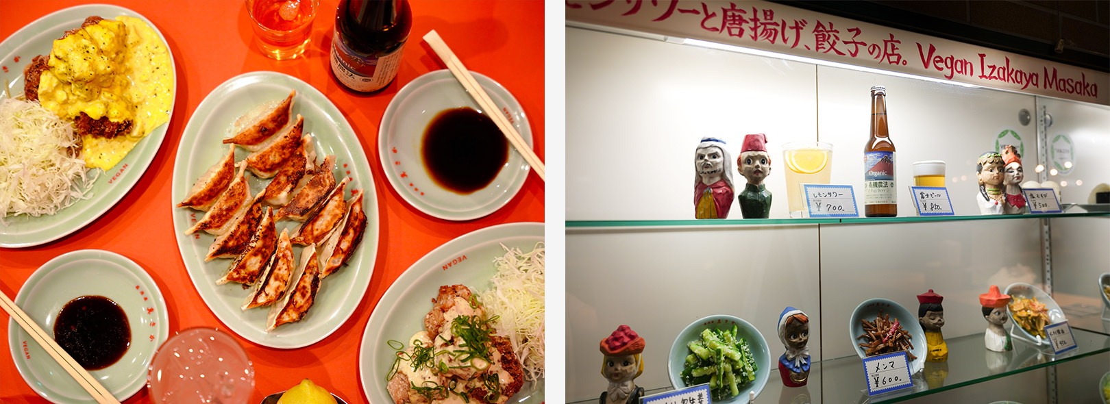 植物性の食材のみを使用したメニューを展開するヴィーガン居酒屋。植物性の食材を使用することは、肉を使用するよりも生産過程で発生する温室効果ガスを削減できることで知られている。ヴィーガンは満腹度が得にくいという声も聞こえる中、ここでは、人気メニューの唐揚げや餃子をはじめ、ヴィーガンでなくても料理を楽しめると評判だ。野菜は可能な限り国産のものを使用し、環境や健康に配慮した料理を提供。2025年3月より、「肉味噌もやし」と「焼売」が新登場。