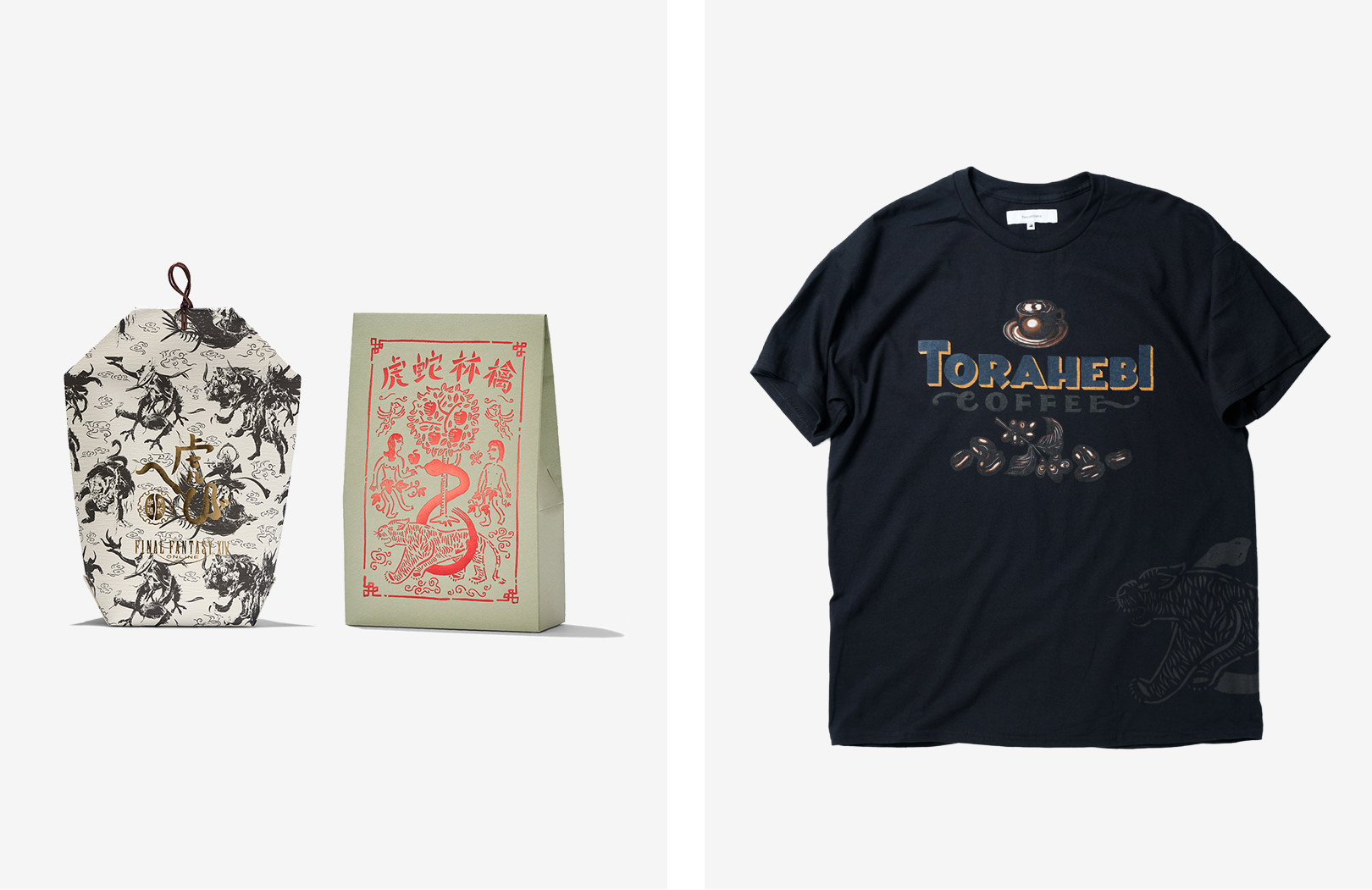 元科学者の焙煎士が、独自の自然科学製法にて自社焙煎、ブレンドするコーヒーブランド。添加物やインフューズド製法などは一切使用せず、新鮮な珈琲豆のみを厳選使用して作られている。『ファイナルファンタジーXIV』のコーヒービーンを表現したスペシャルコラボ「ファイナルファンタジーXIV×虎へび珈琲 四聖獣 TROPICAL BLEND」や、新たな世界観と味わいが楽しめる「虎蛇林檎ブレンド」を発売中。また、日本のサインペインターのパイオニア・NUTS ART WORKS がフラッグシップストアに描いた人気のグラフィックを「Sasquatchfabrix.」がデザインするTシャツへ落とし込んだトリプルネームコラボTシャツも展開。
