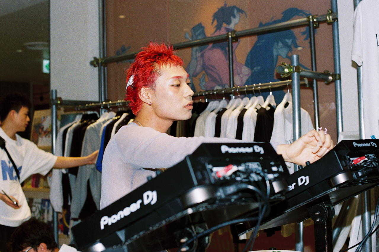 7月18日(金)、「CHAOS CULTURE GEEK」のキービジュアルを手掛けたBRAIN DEADディレクター、カイル・ウンが来日! LA発のユニークで破壊的な独自美学が生み出すアパレルが並ぶなか、magmaとのコラボで鮨屋や居酒屋文化から着想を得た日本限定のキーホルダー&マグネット5種(サーモン・海老・おにぎり・ラーメン・串カツ)を展開するなど遊び心あるカルチャー感度をほとばしらせながら、「オニギリ配布」&「カイル インストアDJ」イベントを開催した。イベント限定のTシャツも販売。