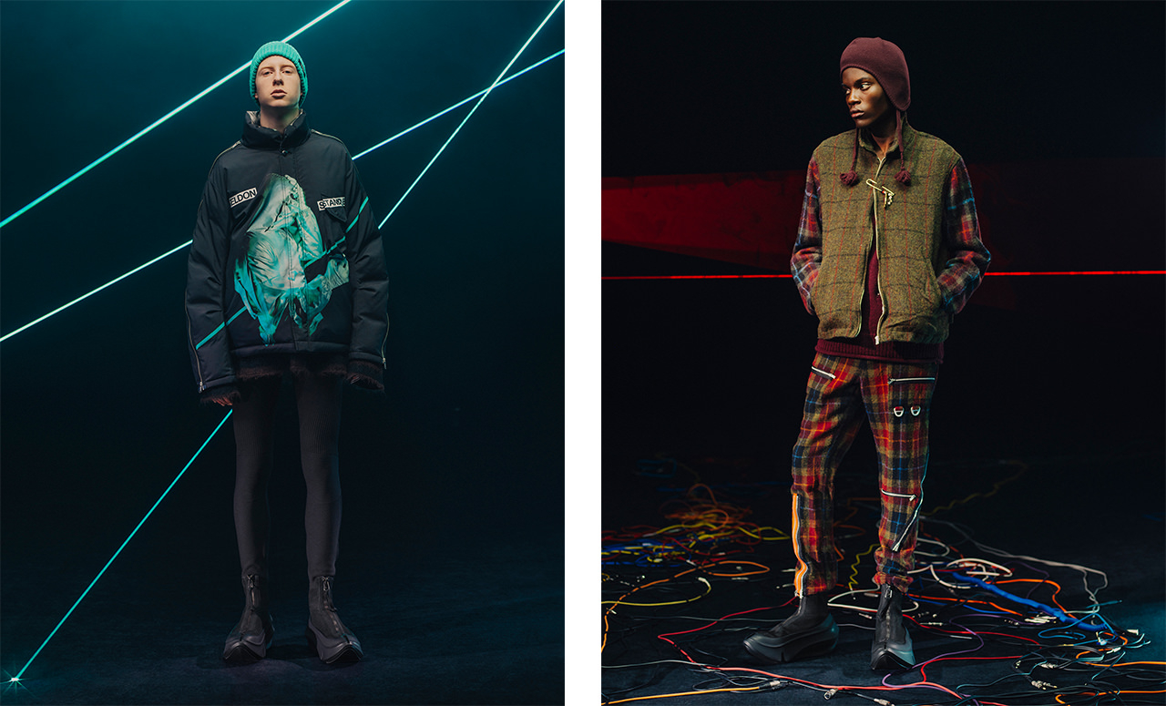 メンズは、1970〜80年台のドイツ、フランスの実験的電子系ロックバンドにフューチャー。同時代の退廃的でインテリジェンスなムードが漂うパンク、ニューウェーブシーンに、架空の近未来のトライブをミックス。それらの音楽にまつわるイメージや空想的な生物を描くアーティスト、ジョセップ・バケのアートワークを用いたルックを展開する。ウィメンズはブランド創立35周年を記念し、デザイナーがベストコレクションと考える2004AWにフォーカス。ぬいぐるみ作家アン・ヴァレリー・デュポンとパティ・スミスから着想を得た当時のスタイルを現代的に再構築する。