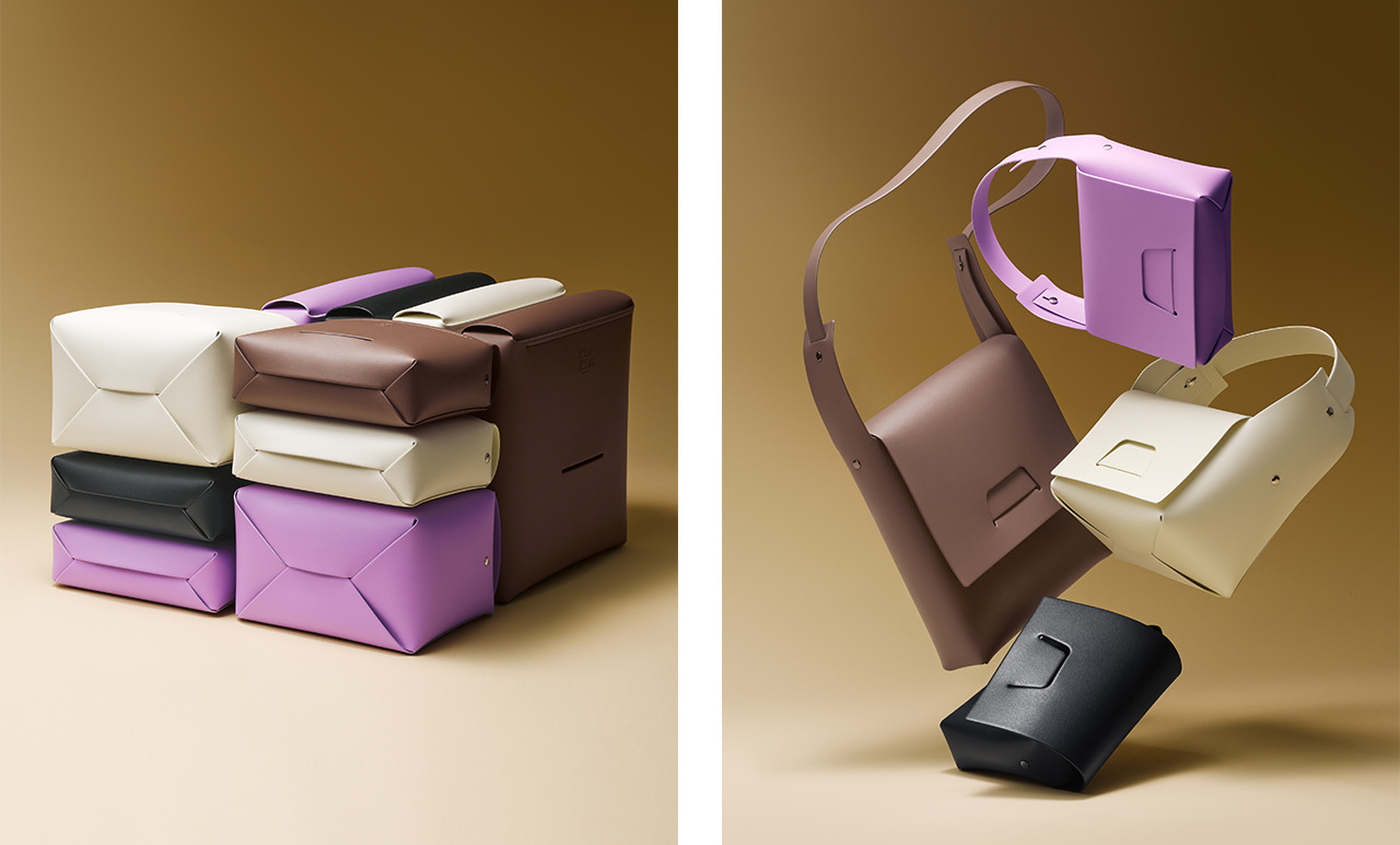 2018年にイッセイ ミヤケがスタートした、いいものを探求し、独自の雑貨開発に取り組む「GOOD GOODS ISSEY MIYAKE」。今季は、思わず触りたくなるような柔らかく軽やかな素材と形が魅力のバッグ「FUWA FUWA」に注目。一枚の長方形の生地を捻って縫い合わせるというシンプルながら計算されたデザインは、“野良着”や“もんぺ”から着想を得て、生地片はパーツとして生かし、サステナブルに制作する。また、箱のシンプルな造形から着想得たシリーズ「BOX」は、収納時には箱の形となり、ストラップを引き出すことでバッグとして使用できるというもの。単純な切り込みや差し込みによって、バッグとしての機能性も抜群だ。