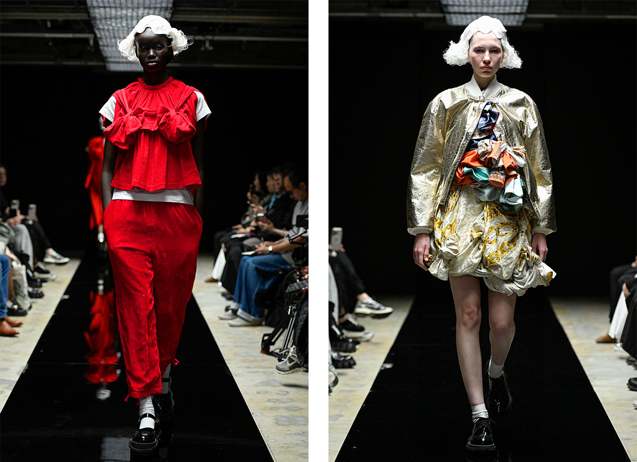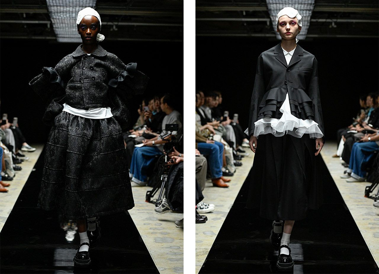 9月19日(金)、ブランド直営店舗が渋谷PARCO4Fにオープン。2025AWコレクションは、強い黒を表現したいという思いから「BLACK&GOLD」をテーマに掲げ、黒の中でキラキラと光るような世界に着想を得た。フリルやパフスリーブ、ギャザー、リボンによるディテールが特徴的な立体的なフォルム、そこにさまざまなテクスチャーの黒を採用し、黒の世界に豊かな表情を生み出す。また、ブランドらしい花柄やタータンチェック柄、縮絨といったテキスタイルが、秋冬のシックな装いに深みを添えている。