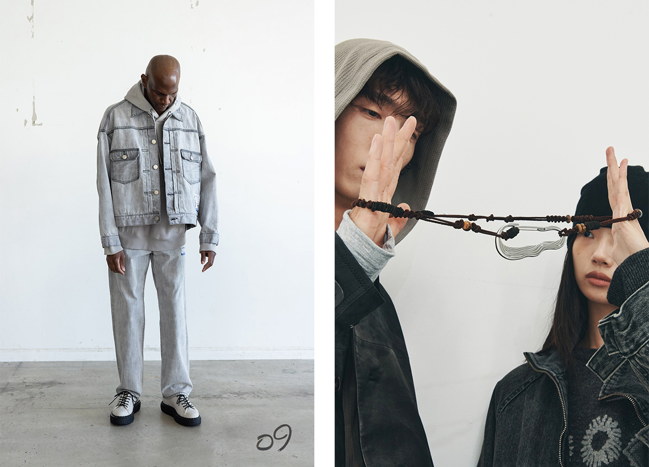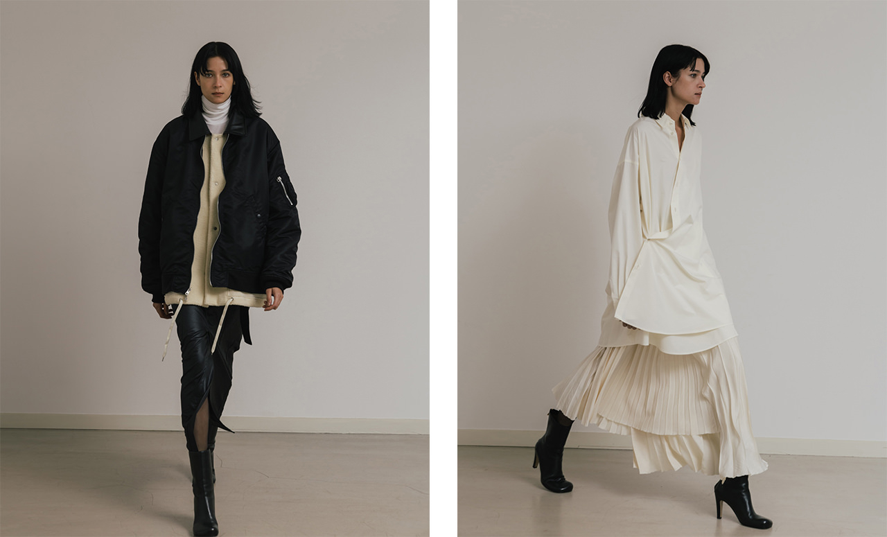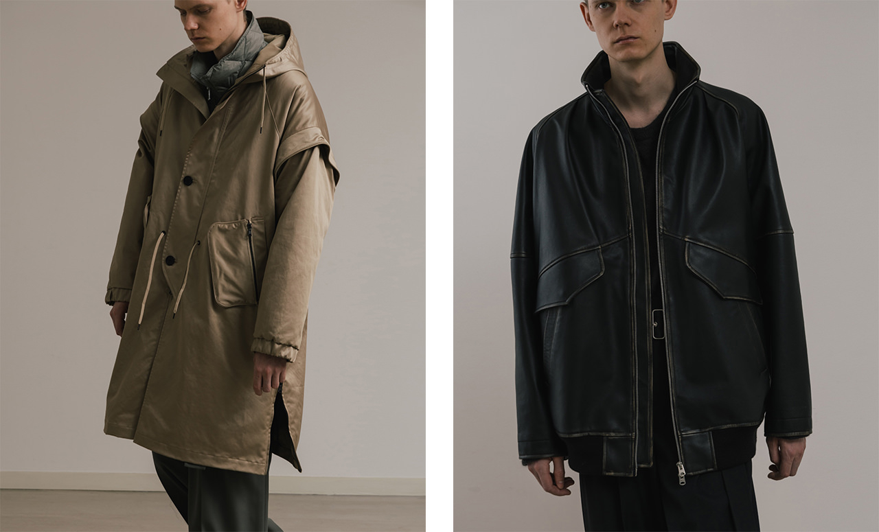 ニュートラルな空気を纏いながら、エレガンスとミリタリーの融合を目指した2025AWコレクションは、前シーズンに引き続き、メンズとウィメンズのミックスにこだわって展開。80年代のバランスをエレガントに昇華し、ミリタリーの要素を加えて新たな美意識を追求。MA-1は取り外し式ボアライナーを組み合わせ、襟に黒のレザーを使用してモードな印象に。レザーに見える質感のワックスヴィンテージを使用したフーディコートは、袖を取り外すことでニュアンスを変えられる逸品。ダウン入りでアップデートされたMA-1 Long reversible や日本発インナーダウンブランド「TAION」とのコラボアイテムにも注目だ。
