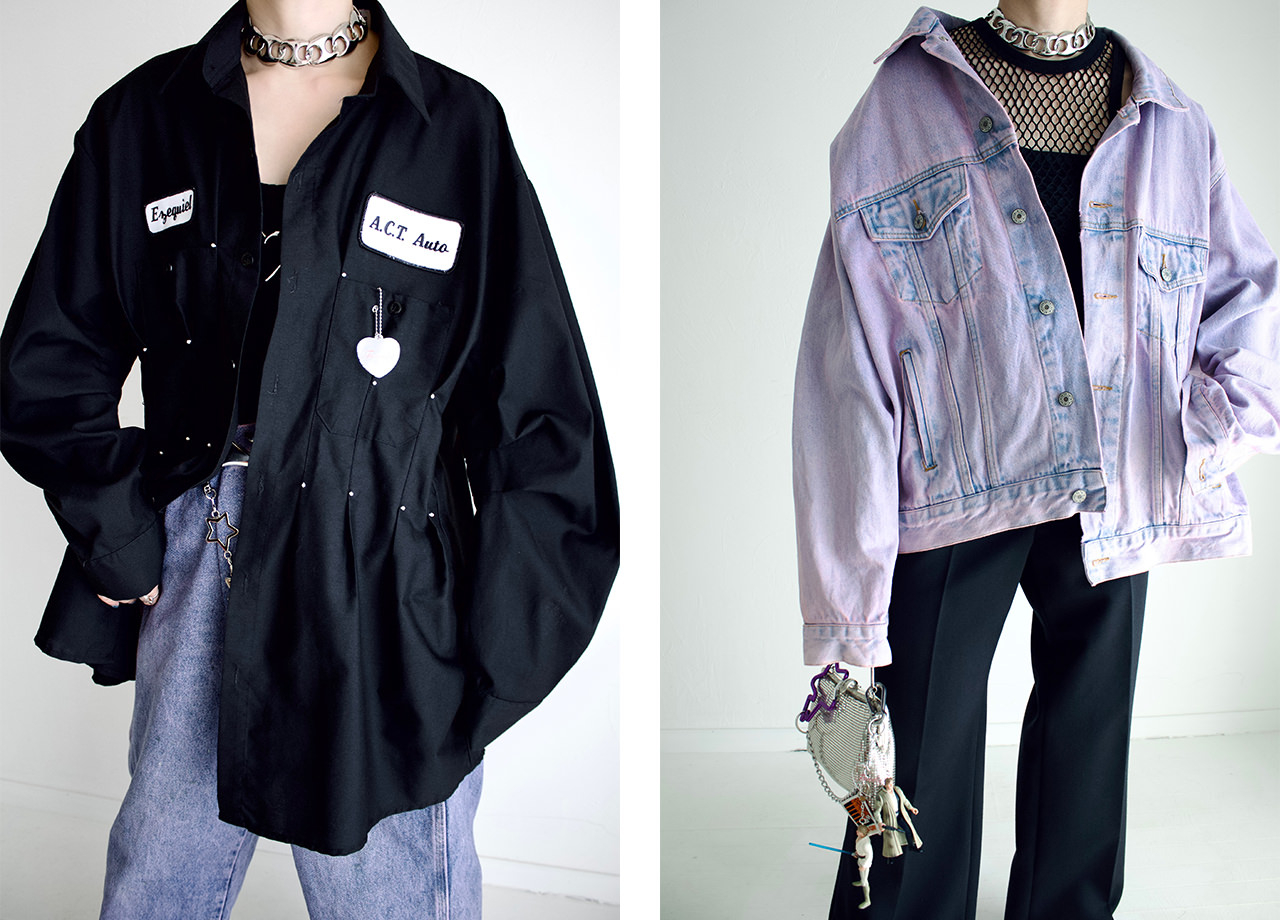 さまざまなヴィンテージショップを定期的に入れ替え制で紹介する、VCMが手がけるマーケット型リアルスペース。それぞれの世界観を一挙に楽しむことができる複合空間となっている。今季は、年齢や性別に捉われず、自分らしい個性を表現できる古着を提案するショップ「TIMOTHY LAND」が登場。「空を着る」をテーマに、デニムの青を空に見立てて、朝日や夕日のように色が移り変わる様子を洗いと染めで表現したアイテムが揃う。ハサミを入れることなく、染めや手刺繍、タックなどで、ヴィンテージならではの風合いを残したカスタムアイテムにも注目だ。