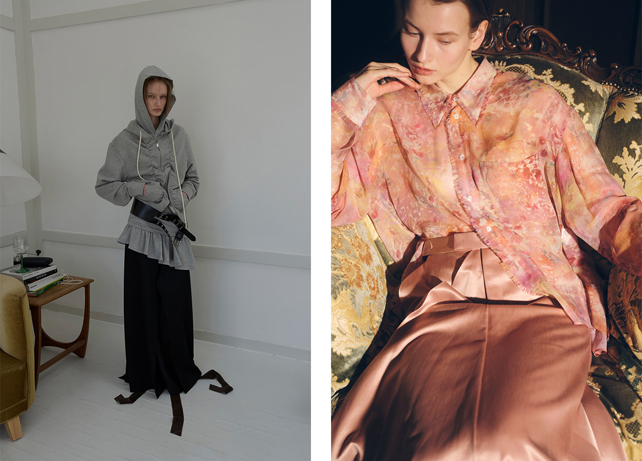 コレクションのテーマは「After image」。網膜に焼きつく残像のように、TRIMMING BIRDのレイヤードスタイルは、着る人の記憶と感性に深く刻まれる瞬間を象徴する。 穏やかな秋のミューテッドトーンの中で、異なるテクスチャーの服が幾重にも重なり生まれる強烈なイメージ。その残像が、現代的で個性的なライフスタイルへとつながっていく。