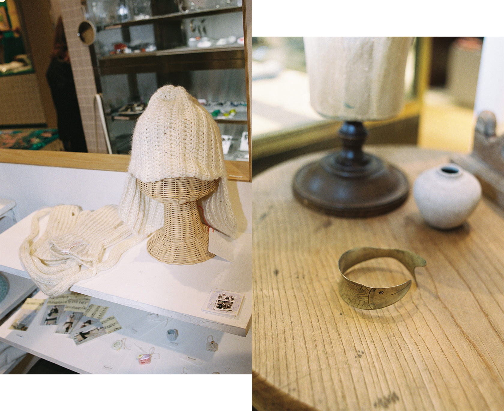 (左)ニュースタア|【渋谷PARCO限定】hiruneknit handknitted hat / mittens(右)Archives|【渋谷PARCO限定】Silver Fish Pattern Bangle