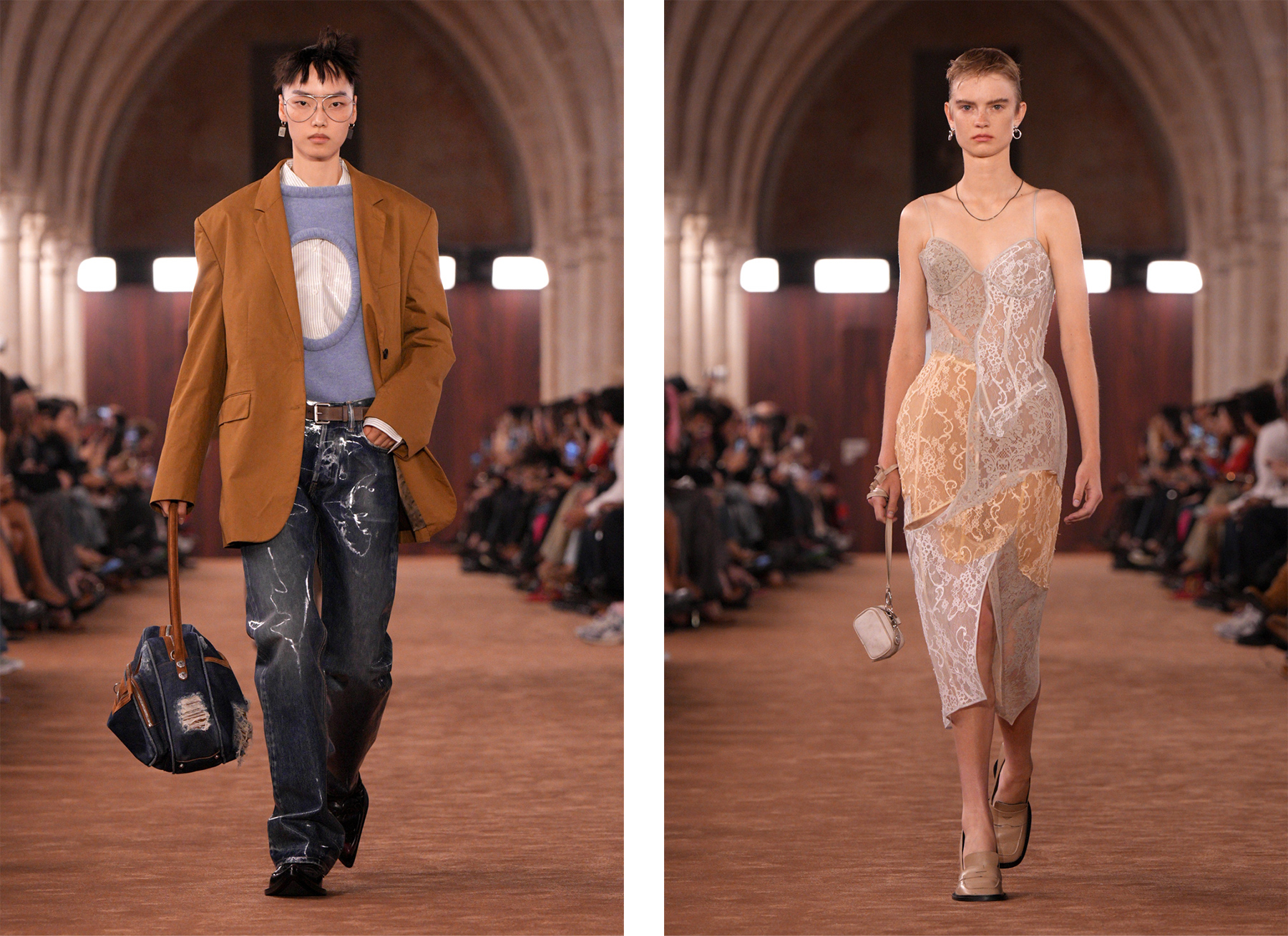 男性らしさや女性らしさの多様性を探求した2026年春夏コレクション。メンズは気取らない若者像を軸に、スポーツウェアの鋭さにノスタルジックで知的なムードを融合。極端に短いショーツやブーツカットの細身パンツ、ロングカラーシャツなど、70年代を彷彿させるアイテムを自由な感性で新鮮なスタイルに昇華。ウィメンズは、中性的な力強さを宿すルックでトランスペアレンシーという概念を再考。パッチワークのクチュールレースで仕立てられた、第二の肌のような彫刻的なフォルムが目を惹く。穴が空いたセーターやラテックス加工のストレートレッグのパンツも大胆な個性を表現。強く自由な次世代像を掲げ、30周年という次の章へと導く。