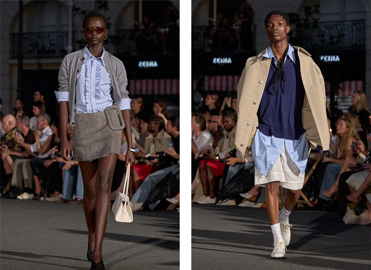 喜び、色彩、自由を祝福するシーズンへの招待状のような「AMI PARIS」の最新コレクション。ブランドらしい洗練されたエレガンスを軸に、明るい遊び心をそっと添えたルックを展開する。春らしいフレッシュな色使いとニュートラルトーンのコントラスト、軽快な素材使い、大胆なシルエットが織りなすのは、自由でモダンなスピリットを体現した開放的な装い。カジュアルなワークウェアやオーバーサイズシルエットの力強さに、オーガンザやニットがもつ軽やかさを重ねることで、心地よいリズムと躍動感を生み出している。爽やかでシック、そしてハッピーな世界観に包まれた、パリから届くポジティブなワードローブ。