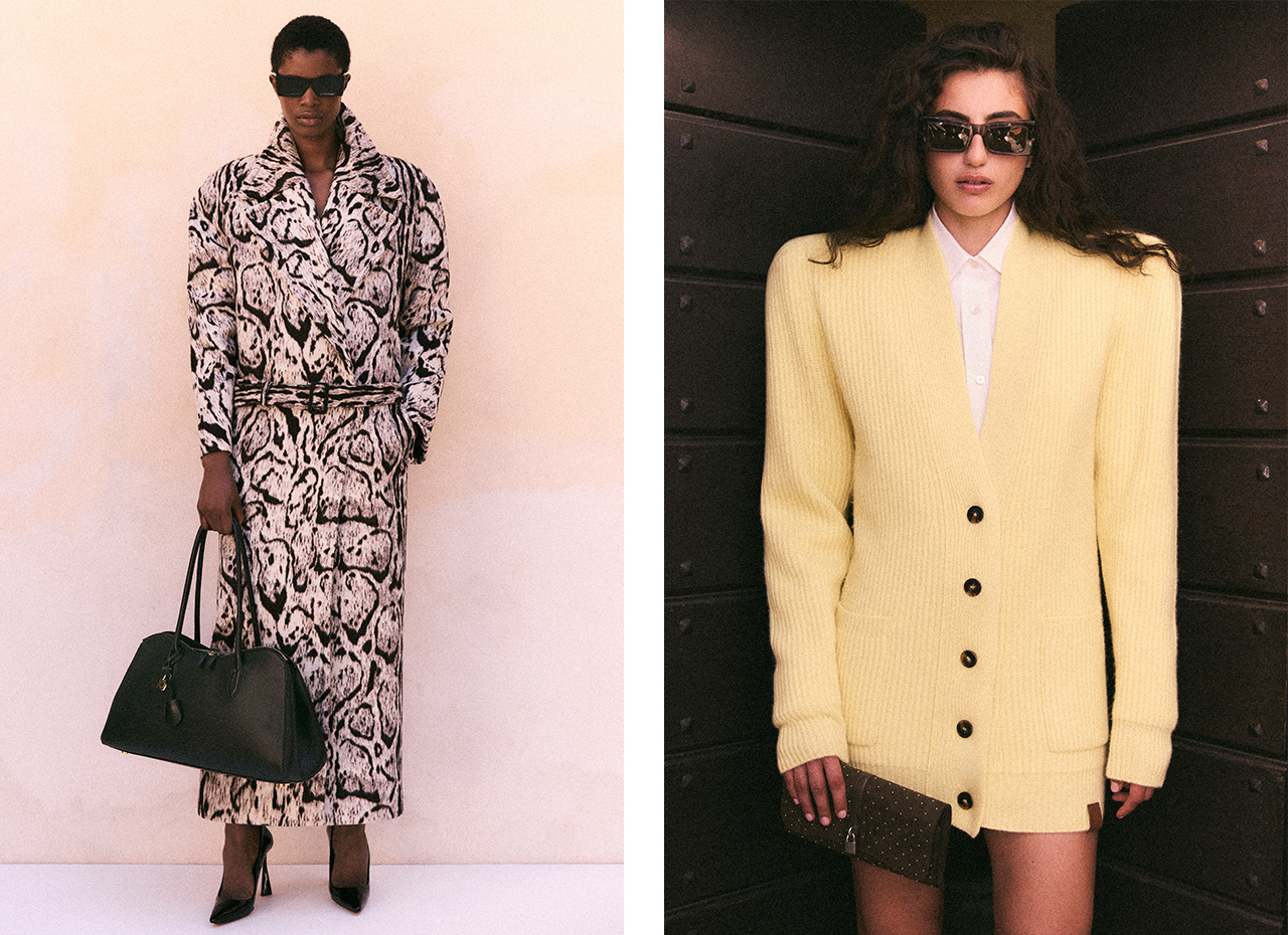 26SSのレディ トゥ ウェア コレクションは「WILD SIDE」をテーマに、あらゆるシーンに寄り添う表情豊かなワードローブを提案。ステラ自身が選び抜いたハウスアイコンを、モールドシルエットや彫刻的なドレープ、存在感のあるディテールで再解釈している。猫のようにフェミニンなエレガンスとマスキュリンなシルエットの二面性が特徴的。ブランドが大切にするサステナビリティとクルエルティフリーの精神は、今季のクラウデッドレパード(雲豹)柄にも落とし込まれている。さらに、建築的なヒールが印象的な新作シューズ「Elsa」シリーズでは、今季のセクシーという観点を体現。