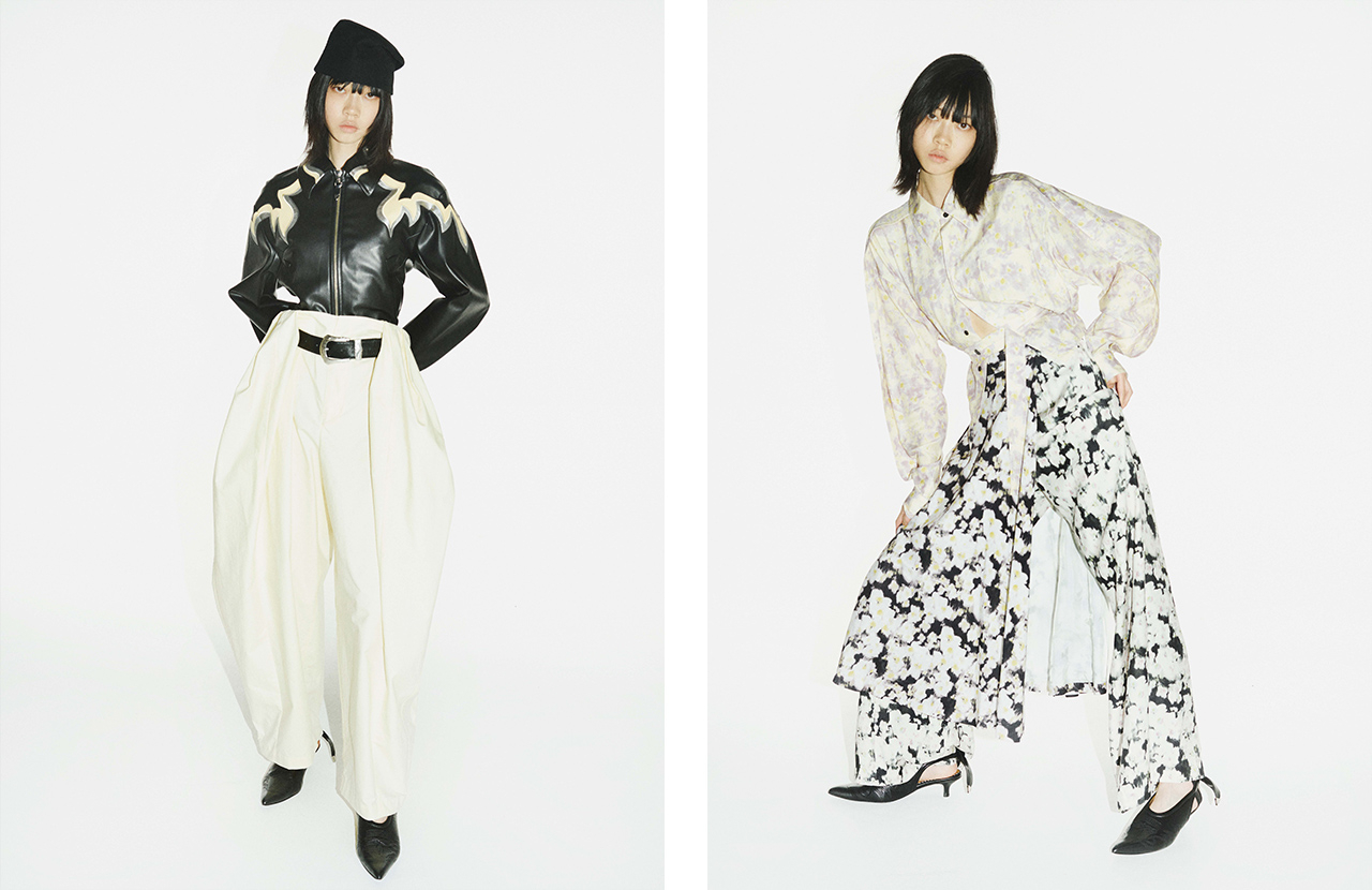 「TOGA PULLA」の26SSコレクションでは、ランウェイで話題を集めたスーパーワイドパンツが春夏仕様のコットン素材で登場。アブストラクト柄プリントで、スカートをレイヤードしたパンツも新鮮な印象だ。一方の「TOGA VIRILIS」は、天然素材を多く採用したリラックス感漂うコレクション。裾の部分を折り返すとクラシックなチェック柄が覗くポンチョや人気のトルコ刺繍シャツシリーズは、シックな花柄の3色展開。