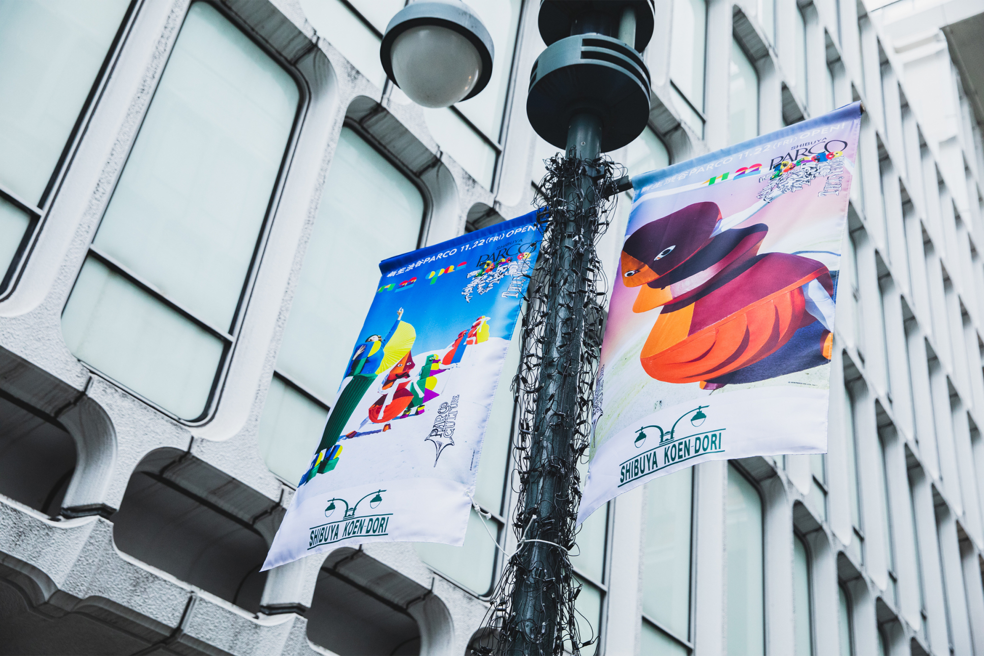 最後に紹介するのは、M/M (Paris)のビジュアルを使用した広告フラッグ。公園通りや渋谷センター街、オルガン坂など、渋谷PARCOへ続く道の各所に設置されているので、このフラッグを目印にして訪れてみては。
