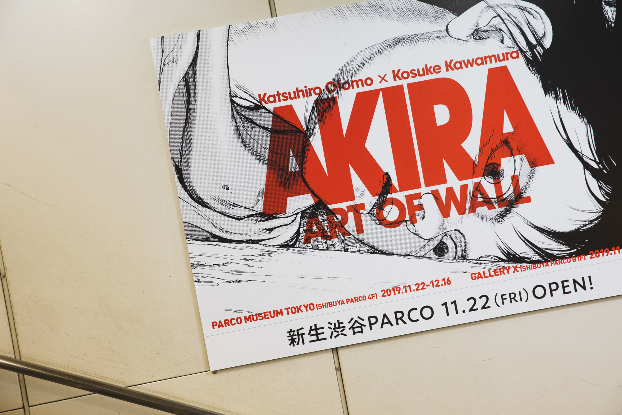 世界中のファンから愛され続ける漫画「AKIRA」。渋谷PARCOのリニューアル工事中の囲いに描かれた「AKIRA ART OF WALL」は渋谷のフォトスポットとしても話題となった。その世界観を改めて堪能できる展覧会が、4Fの「PARCO MUSEUM TOKYO」で開催中の“AKIRA ART OF WALL Otomo Katsuhiro×Kosuke Kawamura AKIRA ART EXHIBITION”。原作者である大友克洋氏とコラージュアーティストの河村康輔氏による迫力あふれるビジュアルが、渋谷の街に再び出現した。