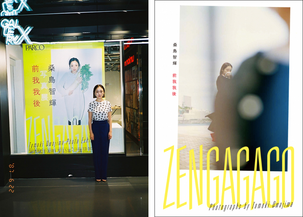 ごくナチュラルに「彼女を撮るのは自然なこと。呼吸しないと生きていけないくらい、彼女を撮っていないとうまくいかない」と桑島さんが語るよう、くる日もくる日も撮りためてきた写真。それらは写真集『我我(がが)』というタイトルで2019年に発売され、2人の日常を綴った一冊として話題を呼んだ。今回の写真展のタイトルは『前我我後』。という文字通り、『我我』の前後に撮影した写真、そして未発表作品も公開。展示期間中は毎週6点ずつ写真が追加されるそうで、何度も足を運びたくなる。会場限定のタブロイド『前我我後』(写真右)1000部も見逃せない。