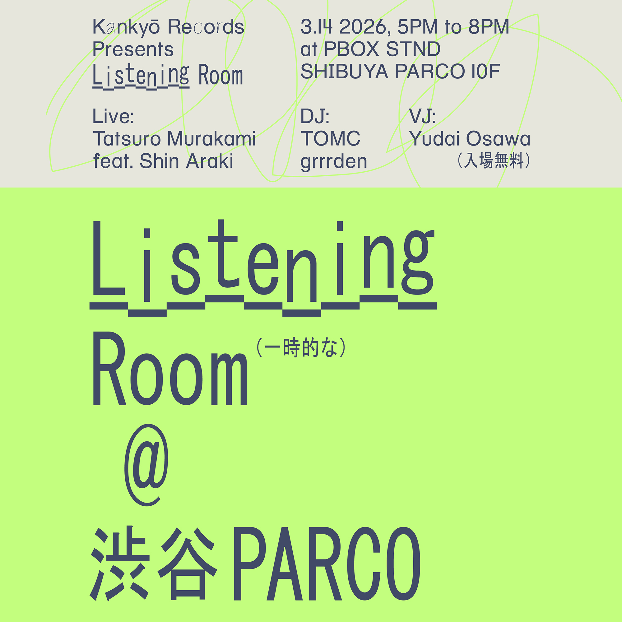 Kankyō Records主催による音楽リスニングイベント〈Listening Room〉を開催します。本イベントは、渋谷PARCOの企画〈PERSON〉がフォーカスする「人やコミュニティのあり方」を、音楽の聴き方という視点から捉え直す試みです。MORE INFO