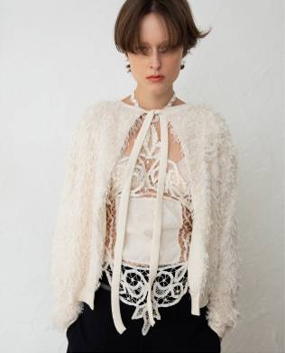 2020年に舟山瑛美が立ち上げたウィメンズブランドFETICO。「The Figure : Feminine(その姿、女性的)」をコンセプトに、身体のラインを強調するスタイルで独自の存在感を放ってきた。確固たる美学から生まれる服は、静かで知的なムードと内側から滲む強さをあわせ持つ。唯一無二の女性像を提案し続けるFETICOの現在地と、そのクリエイションの源泉をひもとく。