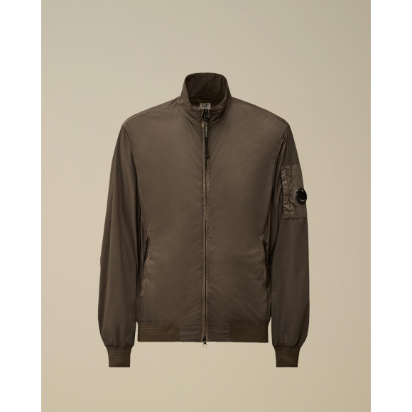 ●ナイロン素材のリサイクルに取り組むECONYL®の再生ナイロンを織り上げて作られたファブリック"NYRCA"を使用したショート丈のジャケット。
